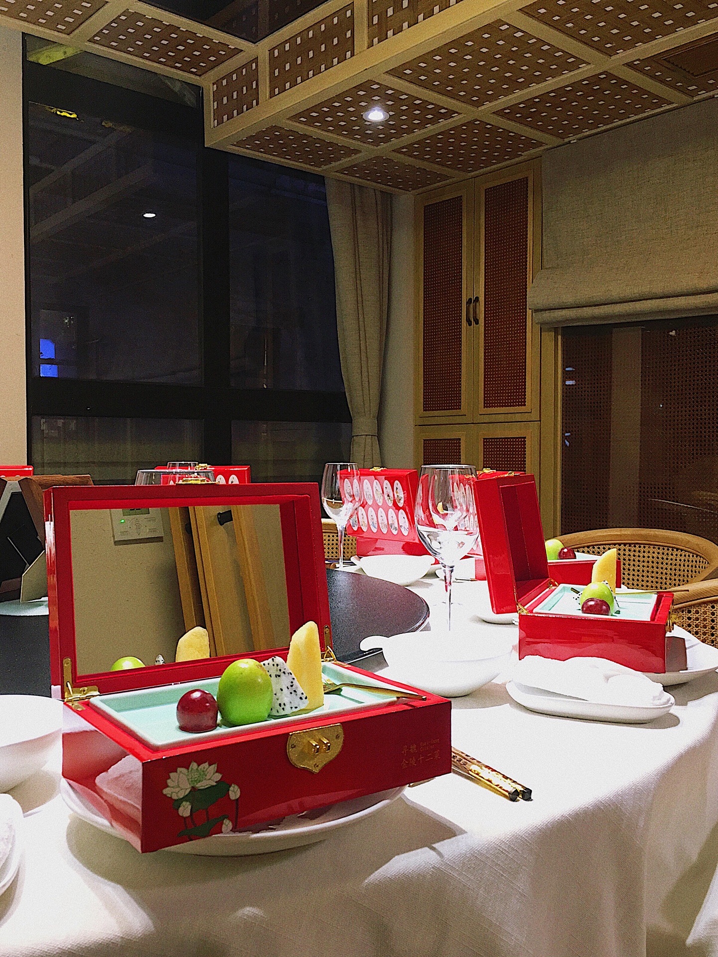 年终将至, 团建、宴请选哪家餐厅比较好呢? emmm…… 个人觉得寻魏•金陵十二菜莫属了! 玄武区太平北路68号1912商业街区7幢(小火车站旁) 由之前的老门东店一路追随而来, 无论是餐厅的设计、餐具、服务,还是人均消费等都是挑不出太多毛病的。 听闻最近92再添新店,还是红楼梦的主题风,不得不携同事们过来团建了呢~ 整栋三层,散座以及包房都很多,并且增设了一间可同时数十人就餐的豪华大包,以大好山河图为背景!另每一个十人左右的包房都是一位红楼梦的人物典型,当天我们的是黛玉厅,纸巾也是相应的黛玉葬花图案,美令人不忍心擦拭手口! 还是那个仪式感满满的化妆盒果盘, 经典的菜品每次都是要点的, 频繁到已经不愿认真拍照啦~ 安利:醉蟹,脆皮豆腐,野生鲈鱼佛跳墙,鸡汁野生大黄鱼,雨花茶虾仁