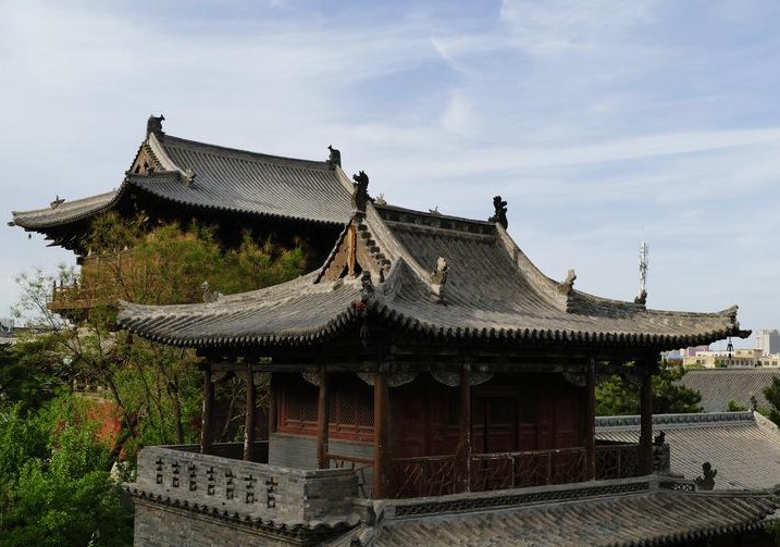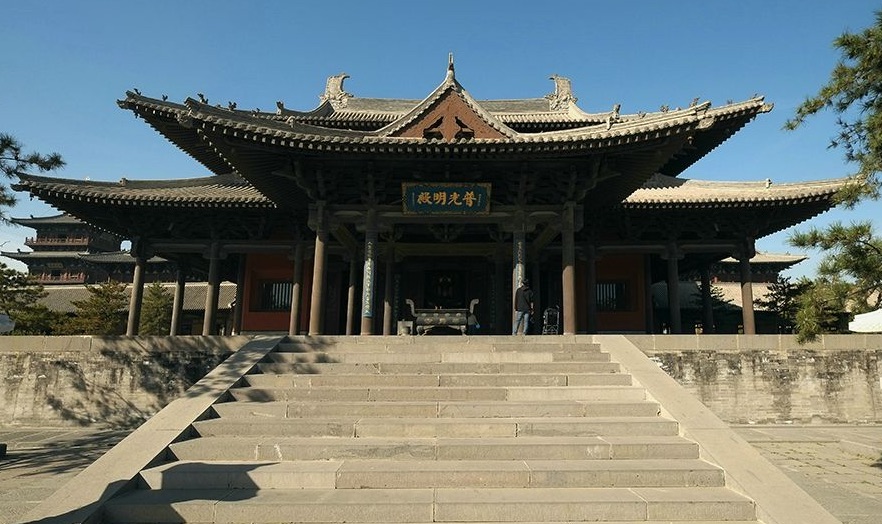 大雄宝殿矗立在4米多高的月台上。这种建筑结构十分牢固,经历八百年仍稳健、坚固、气势雄伟