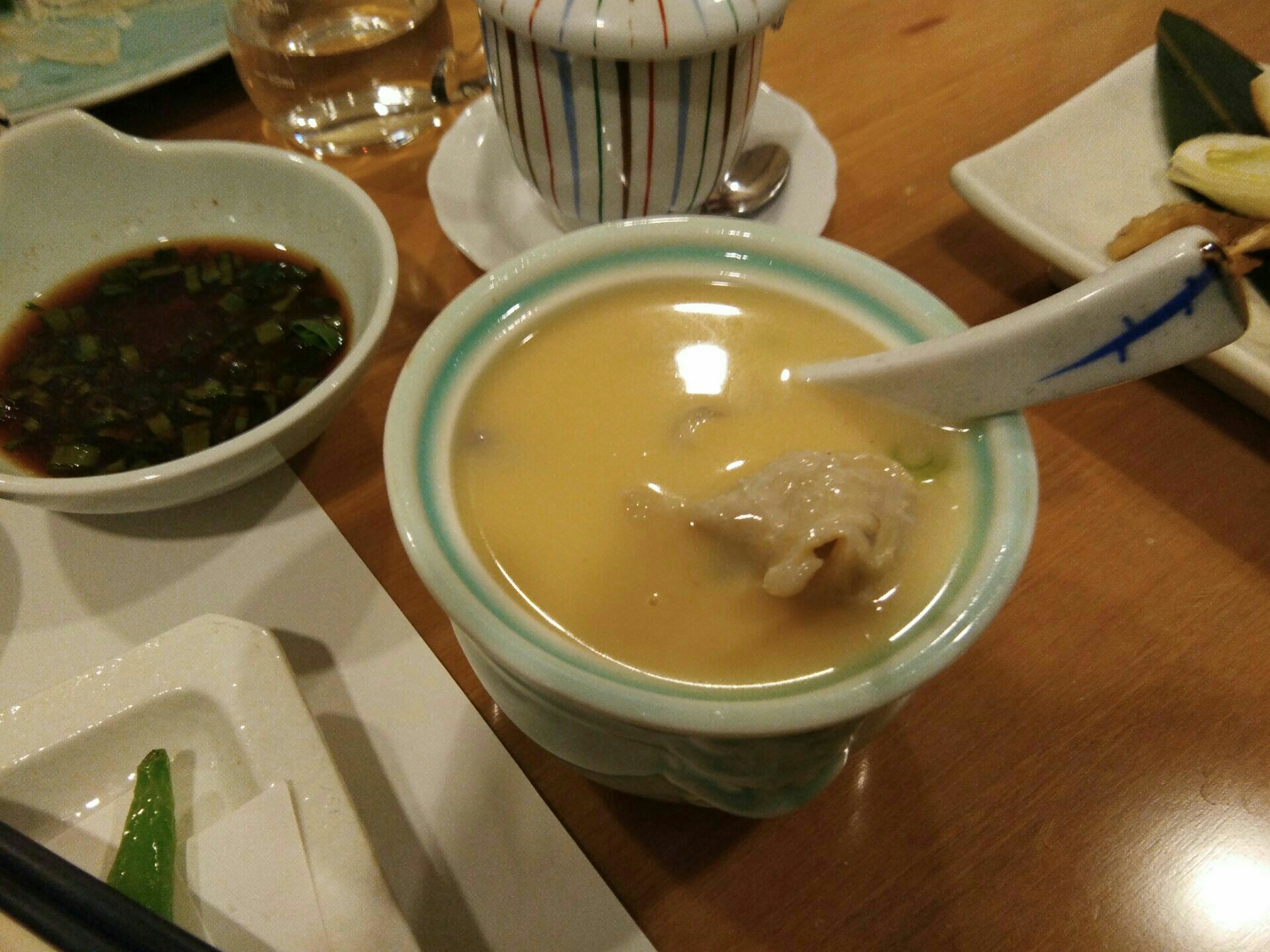 以前吃过河鲀,但各种菜品全是河鲀,真没吃过。另外一间也有食客。总之七八种河鲀菜,也没怎么让人惊叹