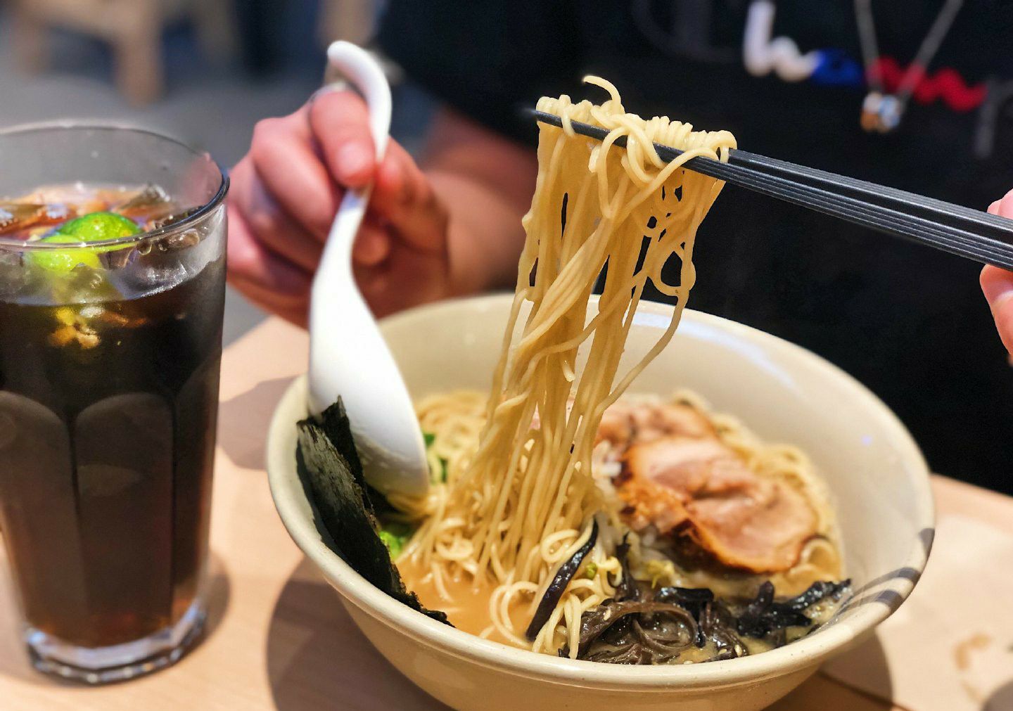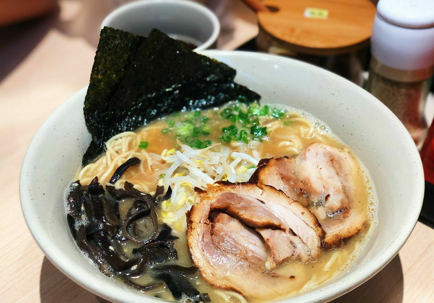 汤面里面还有好多豆芽木耳,添了一份爽脆的口感,叉烧有淡淡炭烧味,满足感十足!拉面是细面,口感超爽滑的