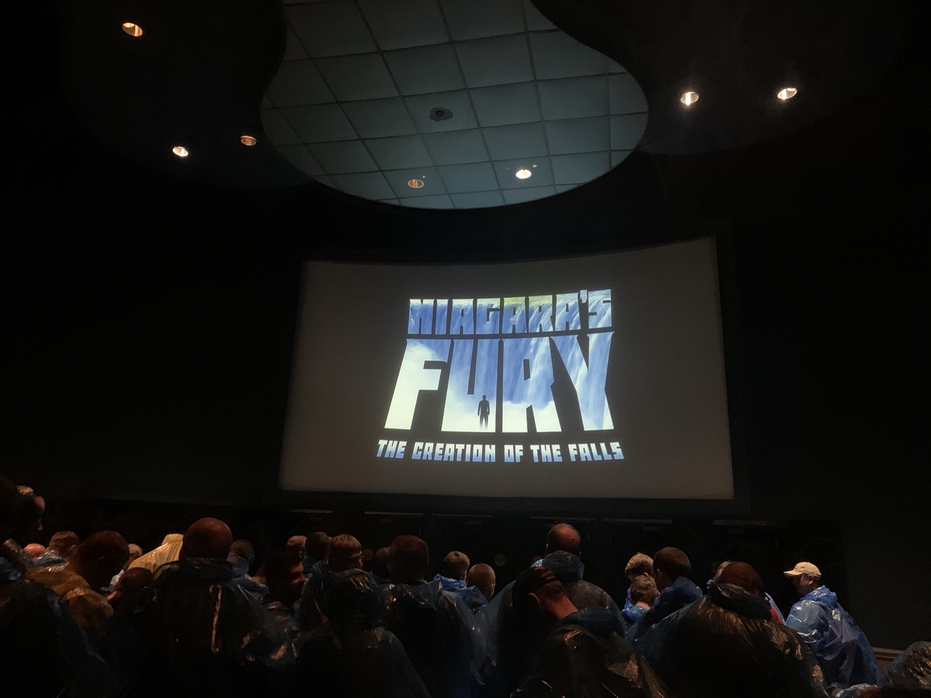 由于我们买的套票里含了这个所以我们就按时来了。没想到看个电影入场前也是要穿雨衣的。电影一共十几分钟,大家都是站在一个能活动的平台上看的。短片以动画人物的形式介绍了瀑布的历史及现在,随着剧情的发展会有喷水及震荡摇晃,还是有点小意思。