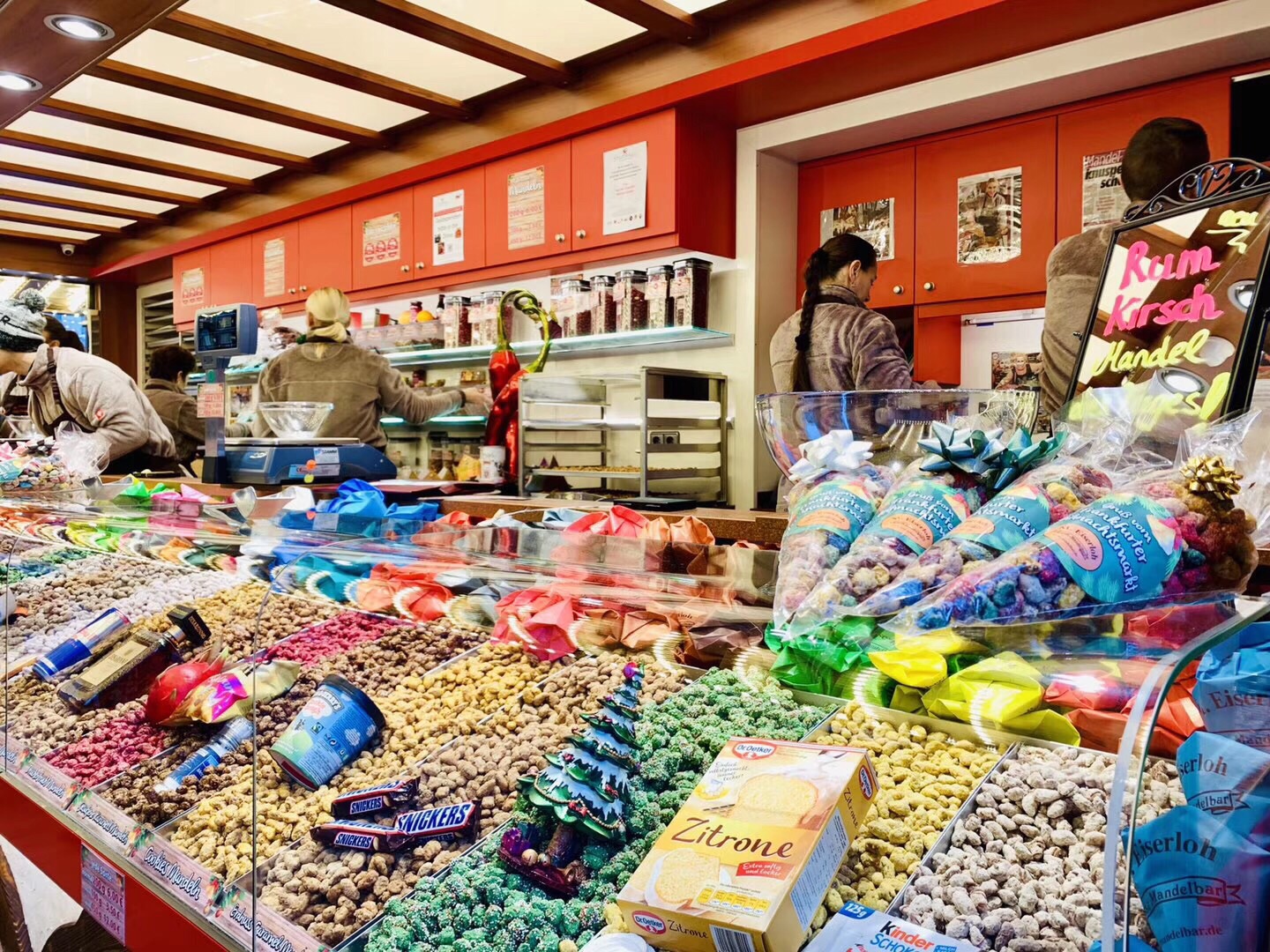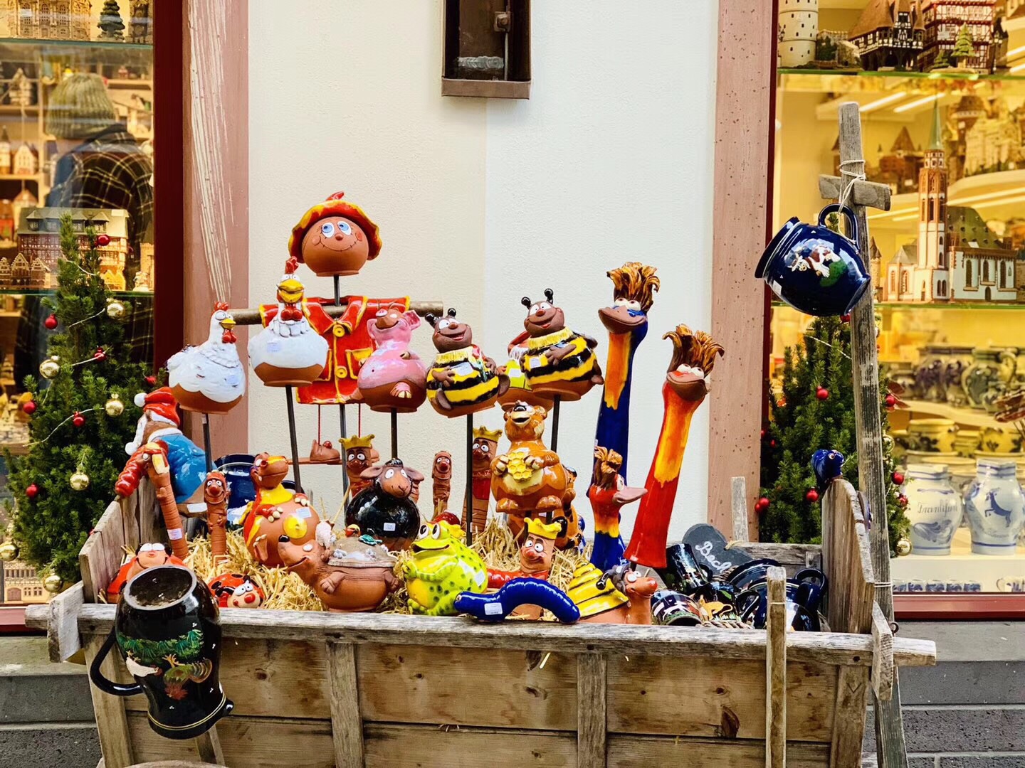 聖誕集市當然要發發這琳瑯滿目的東西,可惜這個地方只收現金,結果我什麼都買不起,發現了一個賣炒杏仁的檔口,掏盡了喲最後一個硬幣就買得起一小包,幾十種口味,真是太好吃了,好吃到哭那種,唉,一個檔攤,過了這個節,想找都找不回來,還發現了一家陶瓷店,各種小東西太可愛了,一樹陶瓷,一木車陶瓷,一角落陶瓷,量詞不夠用了