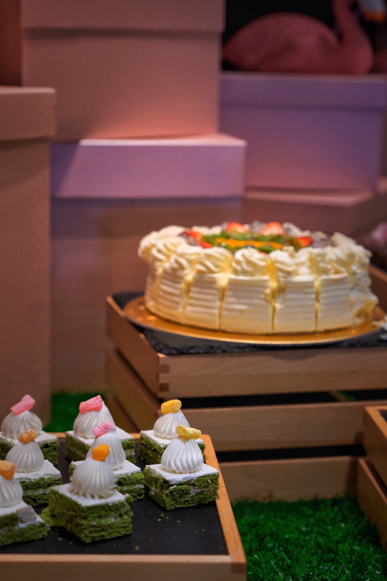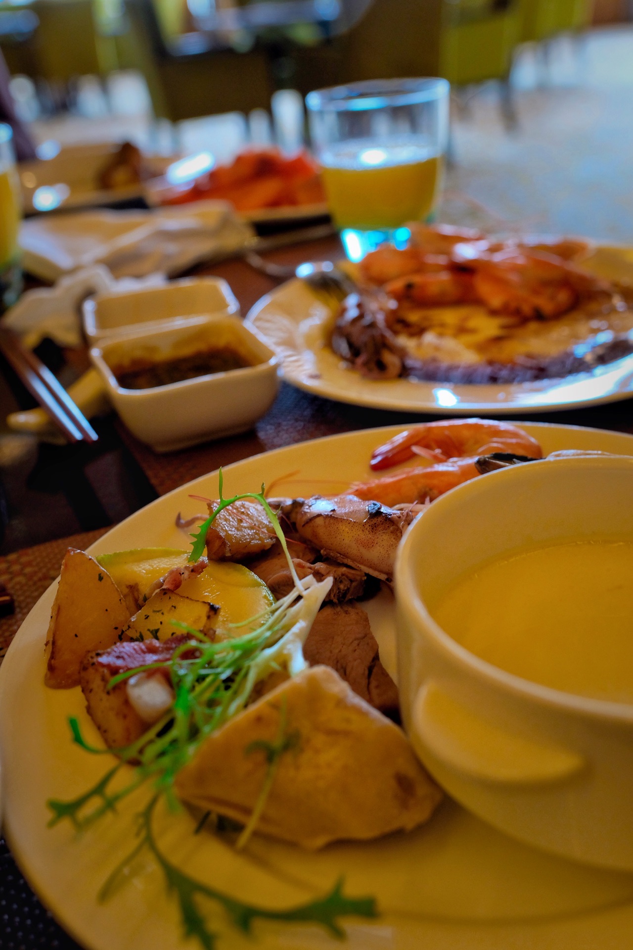之前商户做活动,囤了一些活动券,和朋友约好一起过来大战几百回合。服务自不用说,酒店级别非常到位。自助餐区产品线还是比较简单的,日料生鲜口和牛羊肉烤肉口永远都是人满为患,转了几圈都不知道该拿点什么,口味也就中规中矩吧,期待不能太大,相比之下蛋糕还不错,基本在这就吃蛋糕了……