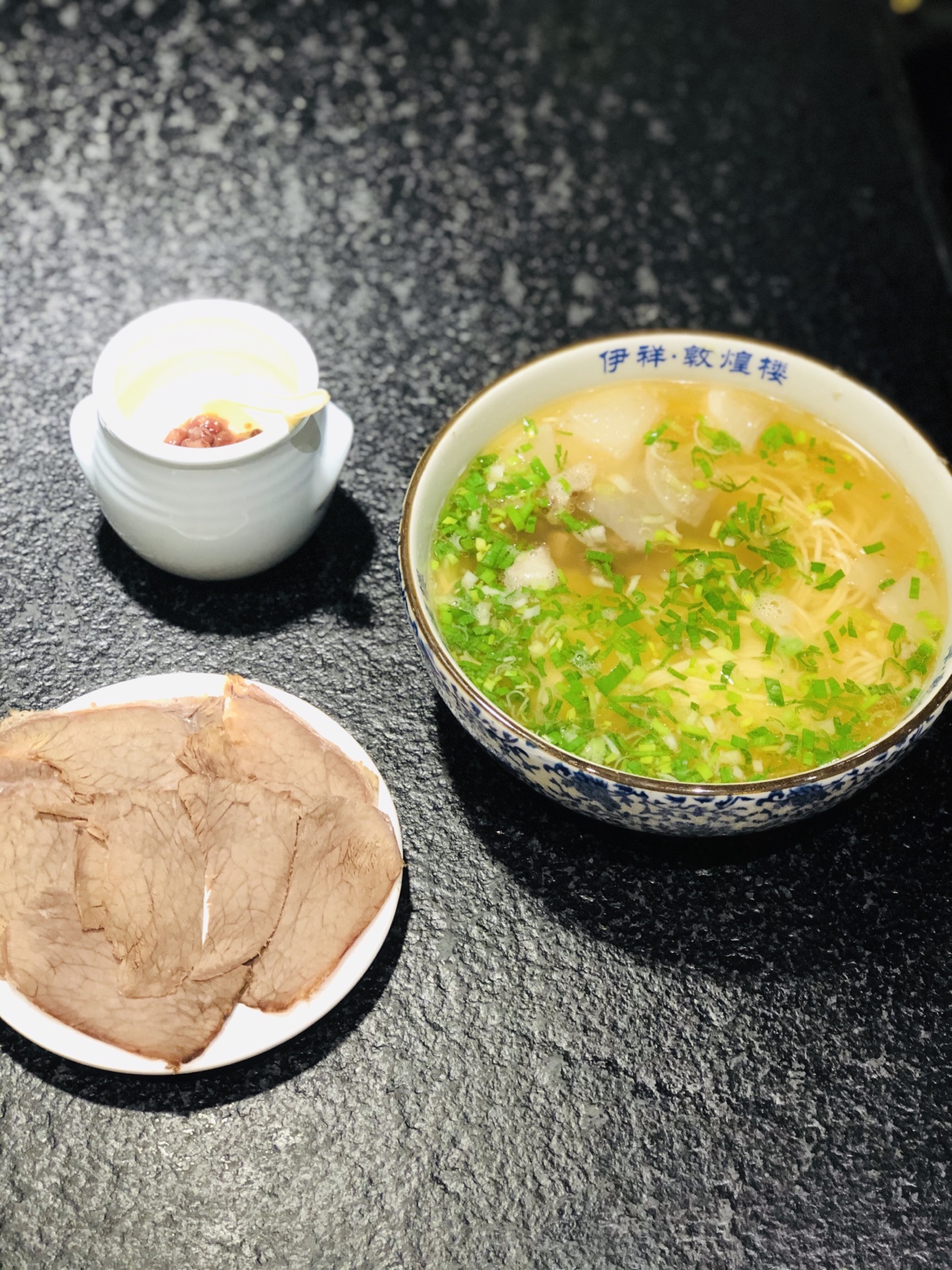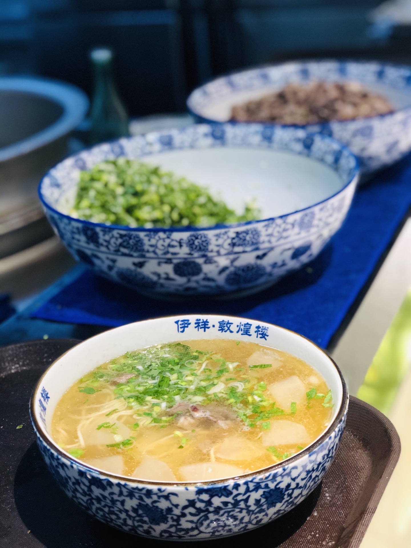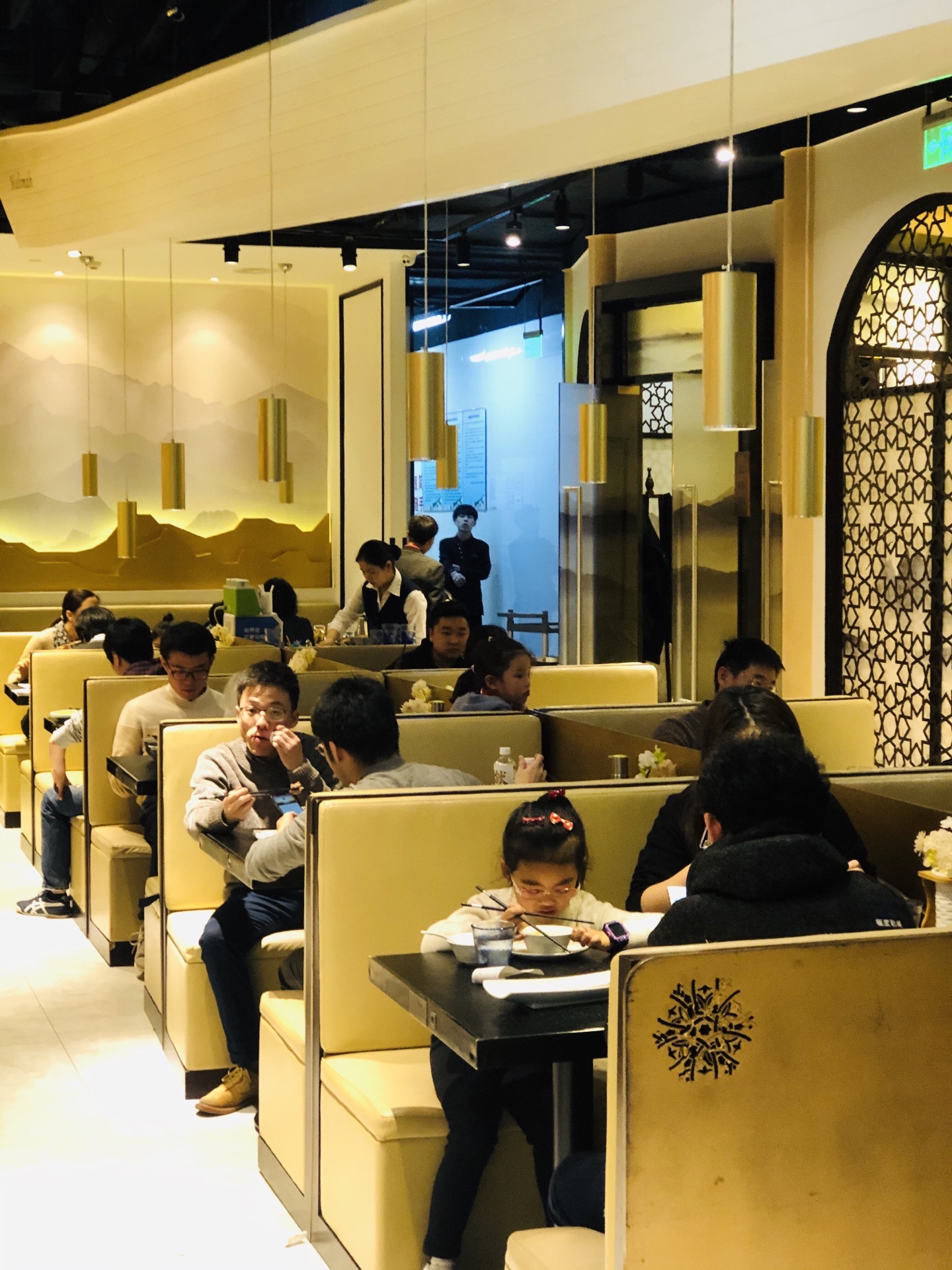 商场一开业,这家高端版拉面餐厅就开门迎客,虽然尚悦湾一直来,这家店倒一次都没吃过; 生意一直不错,店里的空间也蛮大的,还有包房,厚厚的一本菜单,从头翻到尾才找到拉面,前面的菜品价格都满贵的,主食价格倒还实惠; 拉面20,羊肉串12,熟牛肉12,不点菜的话,人均50可以吃饱; 上菜速度真的快,就去前台买了个单,最多5分钟,全部上桌了,很优秀,大概知道我饿了; 味道还行,就是有点咸了,下午喝了三杯饮料