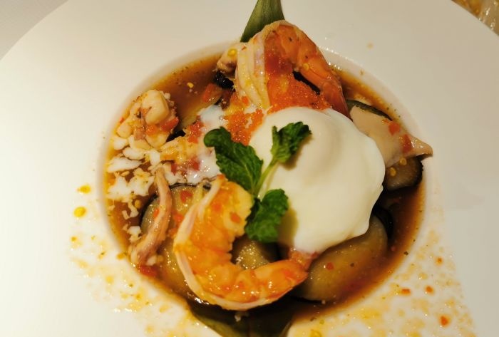 开在市中心的一家泰国菜餐厅。服务和环境都不错,菜品也挺满意的。最喜欢的是一道烤牛肉的菜,七分熟我觉得比较好 ,肉很嫩,不为主打菜,推荐!海鲜炒饭也颇为满意,小伙伴说吃腻了菠萝炒饭,想试试海鲜炒饭,没想到很惊喜,米 饭用的是泰国香米,炒得粒粒分明,不硬却又很有嚼劲,掌勺师傅水平了得!