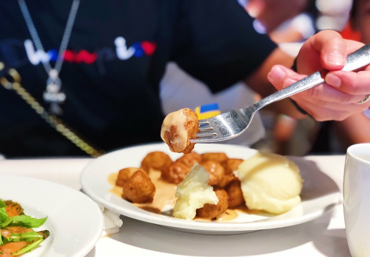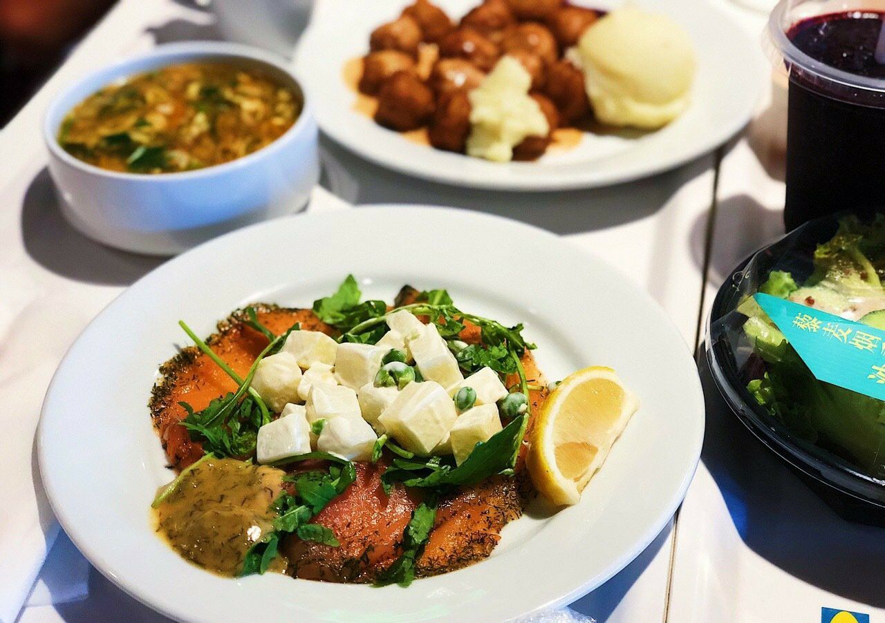 每次逛家具之前都一定会吃点什么~吃饱喝足才能逛街是吧! - 香烤西冷牛排 牛排还可以呀,基本全熟的状态还可以保持滑嫩的口感,黑椒汁味道不重,但是配在一起也很不错了! - 瑞典式肉圆 这个我还蛮喜欢的!虽然肉丸不会很Q弹,但是味道不错呀!北欧菜里面难得的咸味重的菜~值得打卡! - 牛肉蔬菜羹 意外好吃!里面有牛肉粒,香芹碎,香草,土豆等等等等,总之味道就很丰富!加了黑胡椒,吃起来很暖身! - 香草三文鱼 就....三文鱼是新鲜的,但是太!薄!切!了!配的酱汁是没什么味道的...土豆泥感觉加了奶油。 - 菠萝雪糕 前阵子的爆款网红!我拖到现在才去试...味道很不错~很清新的菠萝味,雪糕体也很顺滑,不会腻的那种感觉~看着很大一个,其实里面冰淇淋很少!反正吃完了感觉意犹未尽还想再来一个...