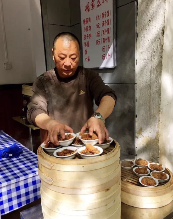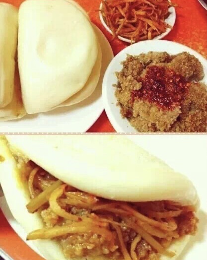 对于咸阳人来说,没有经过时间积淀的美食,谈不上味道两个字。而真正的咸阳味道,是在那些外地人所不熟悉的、从老咸阳记忆深处里飘散出来的美味小吃。蒸肉夹馍就是其中之一! 粉蒸肉、小酥肉、条子肉、蒸排骨……将这些不同的美味在笼屉上蒸透然后夹在馍里吃,称之为蒸肉夹馍。蒸肉夹馍,是一道咸阳特色美味早点,活跃于人们的饭桌之上。清早时分,要上一碗喷香扑鼻的蒸肉,夹进形似荷叶的面饼里,一天的学习生活便在这醇香肉饼的清香中展开。