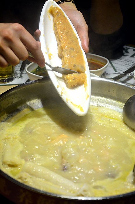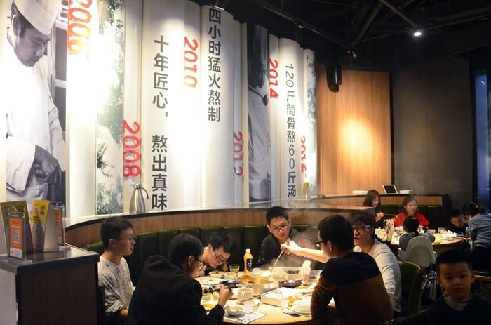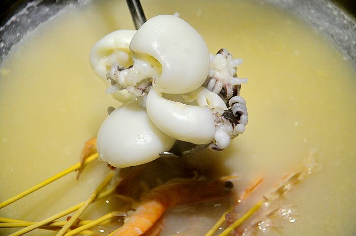 每到冬天,我都会特别想吃这家火锅,给我温暖和满足! 今天寒流来袭气温陡降,赶快前去骨之味(万达广场湖里店)大快朵颐!位于厦门湖里万达三楼,六点多门口已经好多人在排队等位了。 门口有个自己会不停移动的机器人,给等候的食客送上饮料和小食,还会自动躲避障碍物,十分有趣。 店内座无虚席,设计的很合理,毫不感觉拥挤和喧闹,用餐环境不错。 水果和调料是自助的,水果新鲜水灵品质很棒,调料品种丰富,食客按自己口味调制,皆大欢喜。 泉州特色醋肉,这是闽南传统美食,炸的金黄诱人,口感香酥嫩弹,肉香中带着微酸,堪称画龙点睛。 养颜花胶鸡锅,大大的一锅,锅中大骨若隐若现,汤色嫩黄可人,香气四溢,花胶大块厚实,养颜美容,滋补强身,养生佳品。鸡肉色泽鲜嫩,娇嫩可口,新鲜优质,真材实料,诚意满满。 吃上一块花胶,几块鸡肉,喝上一碗香醇浓郁的花胶鸡汤,鲜美滋润,暖意融融,无比舒畅。 吃完鸡肉,用花胶鸡汤涮火锅,滋味一级棒。 豪气牛肋排卷,肉肉大片厚实,果然十分豪气,色泽红润,纹理清晰,品质不俗。涮后不松不散,口感嫩而有嚼劲,肉香浓郁,吃上一片,满口余香。 特级牛上脑,肉肉切的大小厚薄均匀,刀工很棒,摆放整齐,肥瘦相间,涮熟后吃起来细嫩香浓,回味无穷。 手切鲜牛肋条,新鲜的牛肉闪着诱人的光泽,每块肉都肥瘦得宜,涮熟后口感娇嫩筋道,鲜香可口,大口吃肉的感觉真好。 安格斯石纹牛肉,有着大理石般美丽的花纹,让人赞叹大自然的神奇,口感嫩而弹牙,肉香丰盈,爱不释手。 鲜毛肚,毛肚大片厚实,新鲜干净,涮熟后嫩脆弹牙,吸收了花胶鸡汤的香浓,口感味道俱佳。 活捞南美虾,鲜活的大虾,身体晶莹剔透,一看就知道生猛新鲜,品质一流。烫熟后变成娇嫩的粉红色,服务员会帮忙剥虾,用个小夹子,只需简单的三步,就能几秒剥好一只虾,整颗虾肉完整无损,看的我目瞪口呆。虾肉饱满弹牙,鲜美清甜,强烈推荐。 Q弹墨鱼仔,一颗颗洁白如玉,圆滚滚的很可爱。口感十分Q弹,鲜甜的滋味令人陶醉。 手工鲜虾滑、蟹籽虾滑,用小勺分切下锅,等浮起时就可以吃了,一颗颗筋道弹牙,鲜甜味美,一下就被瓜分一空。 云南竹荪,整颗的竹荪形态完美,吸收天地精华,洁白无暇,口感嫩脆,滋味清香,仿佛来到了雨后的森林,清新怡人。