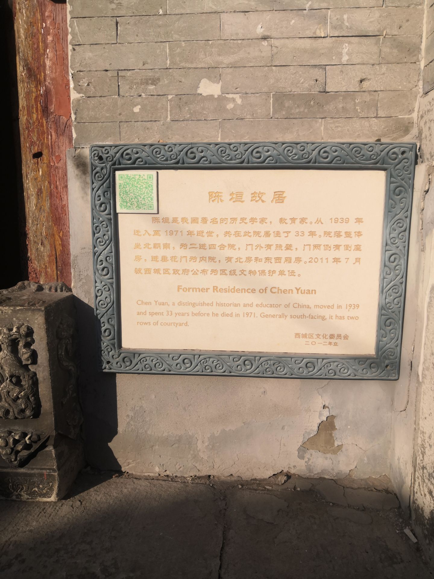 兴华胡同13号,一座典型的老北京的四合院。从这座院子往西几步,穿过一条狭长的甬道北行,就是定阜大街的辅仁大学旧址(现为北京师范大学之一部),门前有四级石阶,两扇大门油漆已斑驳,但两边的一副对联“忠厚传家久,诗书继世长”仍清晰可读。 陈垣,中国历史学家﹑教育家,曾居住于此,因其曾任国立北京大学﹑北平师范大学﹑辅仁大学的教授﹑导师和校长。