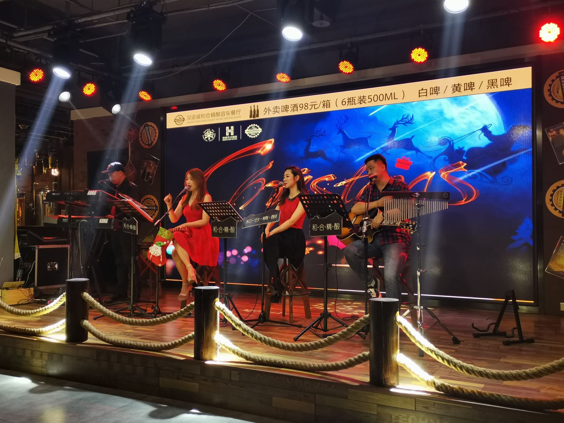 净月这边一直没有找到太好的老歌酒吧,直到发现了这里,虽然离净月还有这距离,但也算是最近的了。 三个歌手里,个人觉得那个男歌手唱得更好些,赵雷的《成都》、姜育恒的《跟往事干杯》都唱得非常好。其他两位女歌手也有各自的拿手老歌。 他家的自酿黄啤不错,还买一送一。口感好,就是杯太大,有些吓人。 晚上十点以后就只能点烧烤了,所以点餐尽量一次就点够,否则想加餐时后厨已经下班了。小菜和烧烤都不错。 一行人酒喝得尽兴,歌听得过瘾。值得再来!