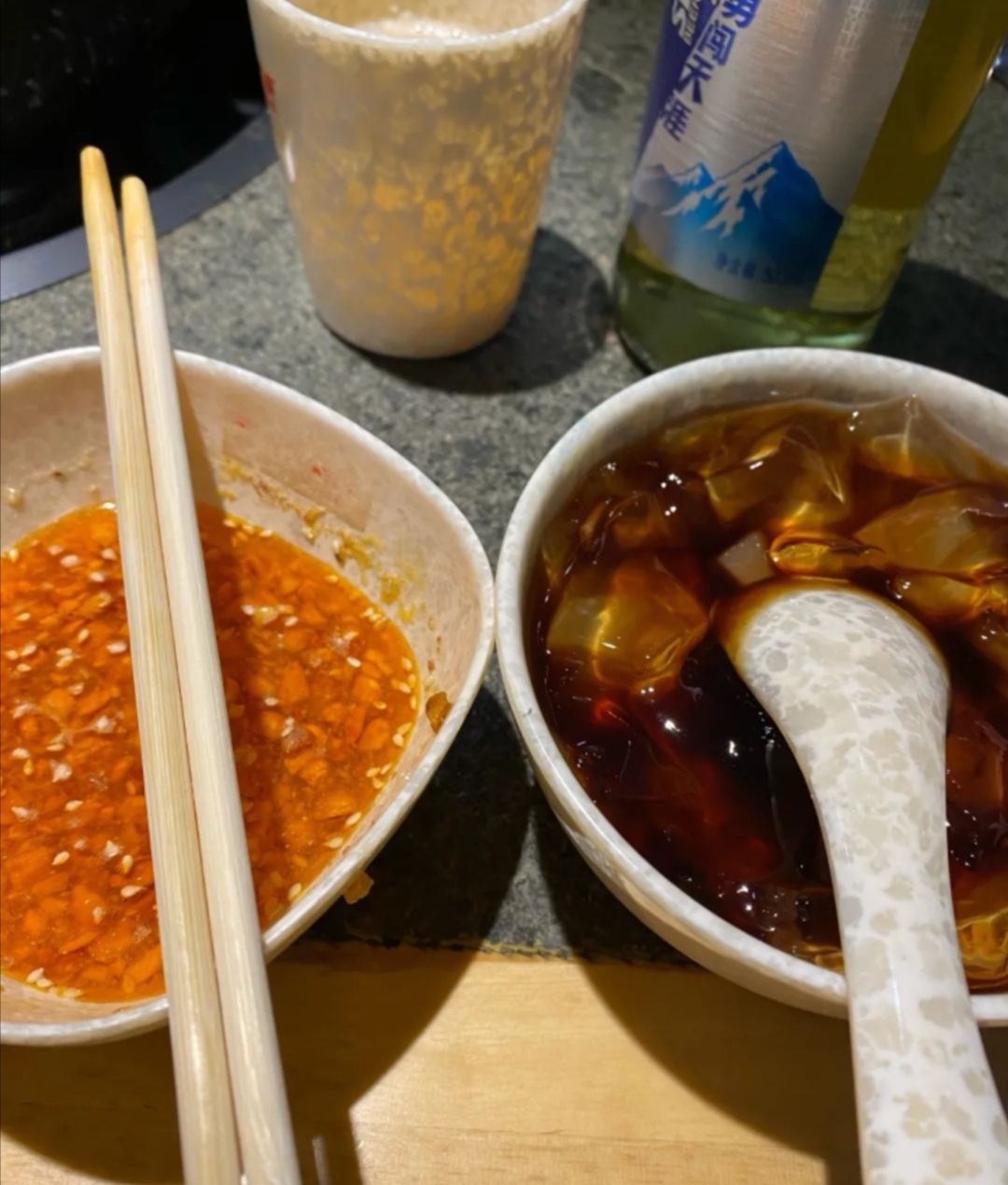 ...选择不辣的,中辣,微辣都可以选,牛肉特别嫩,超级嫩,不管荤素都是七毛钱一串,位置好找,非常不错很久没去了,味道还是和以前一样的好,锅底是不辣的,佐料碗可以选择辣也可以选择不辣的,中辣,微辣都可以选,牛肉特别嫩,超级嫩,不管荤素都是七毛钱一串,位置好找,非常不错。