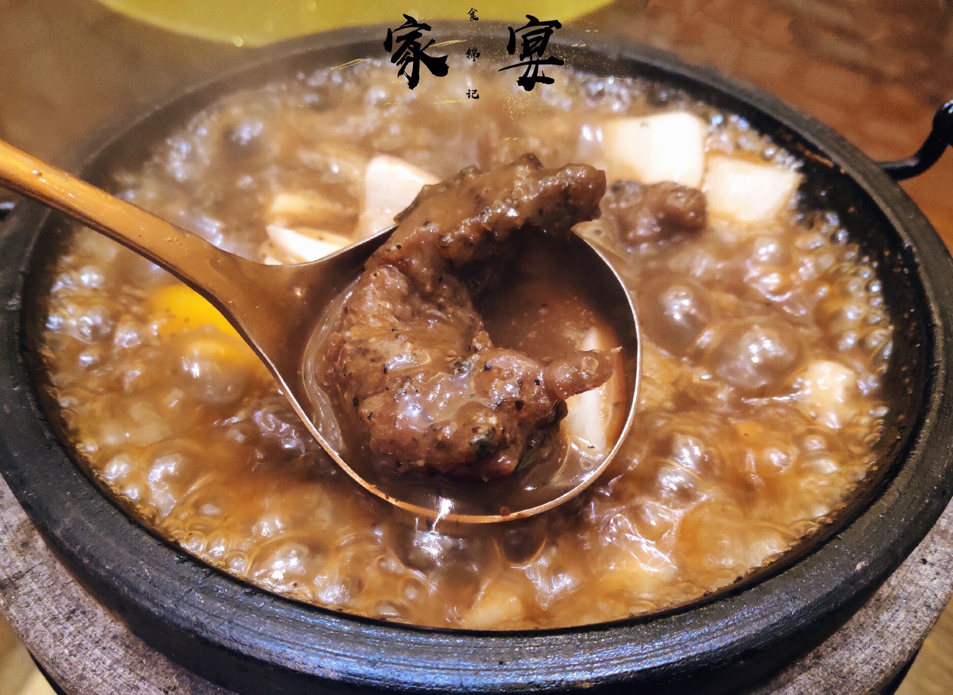 妈妈的味道,是每个人记忆里最深刻的味道。 食锦记·家宴,一个深耕多年的闽南私房菜老品牌,带你还原那最初的味道。 店铺位于泉州开元盛世广场里,海底捞隔壁。 「安海醋肉萝卜糕」 经典的闽南小吃,安海萝卜糕是闻名已久,外皮炸得酥脆,里头的萝卜泥软绵;精选上等猪肉炸的醋肉,味道更是不错。 「金牌汽锅鸡」 精选6个月的上等河田鸡,搭配党参枸杞,蒸足4个小时,鸡肉软嫩,汤头超级鲜甜味美,和在建水吃过的味道一模一样。 「雨花石锅牛肉」 滚烫的石锅牛肉一端上桌,就闻到了黑椒香味,上等的牛肉十分的入味,黑椒汁搭配米饭,更是一绝。 「葱姜蒜焗水库鱼头」 店铺新菜,先过油的葱姜蒜味道更加的香,腌制过的鱼头搭配葱姜蒜更是入味,鱼头份量十足。 「芹菜沙鱼羹」 芹菜?不说还真辨别出来。将芹菜裹粉去蒸熟,在搭配鲨鱼肉羹,味道鲜美无腥味,非常惊艳的一道汤。