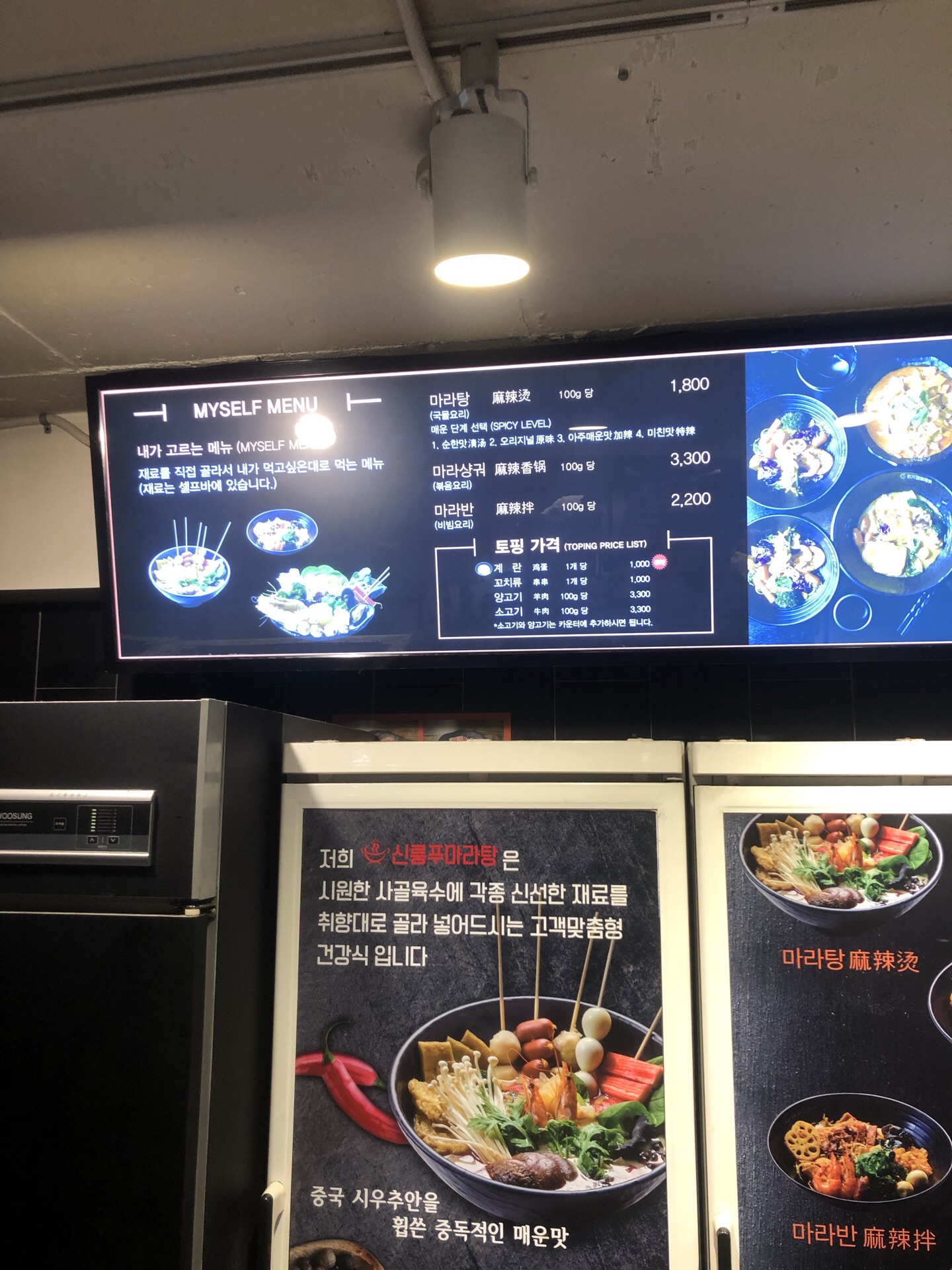 在首尔其实有不少的麻辣烫店,但是和国内味道没差的我觉得就是鑫龙福啦 虽然是连锁店但是每家的味道都略有不同 在众多连锁店中我比较喜欢吃的就是明洞这家 这家的菜品都比较新鲜和干净,选好菜以后可以选择加肉(加肉3000韩币)和做法 我个人比较喜欢吃他家的麻辣烫 因为他家的麻辣烫麻酱味不是很重,汤的鲜味比较浓厚 麻辣香锅也是不错的,不是很辣,但是香味十足,适合不怎么吃辣的北方朋友 对了他家的芝士饼也是一绝,这是他家独有的东西哦! 价格的话属于平价的,适合我这种学生党哈哈!#明洞美食##明洞麻辣烫##明洞鑫龙福麻辣烫#
