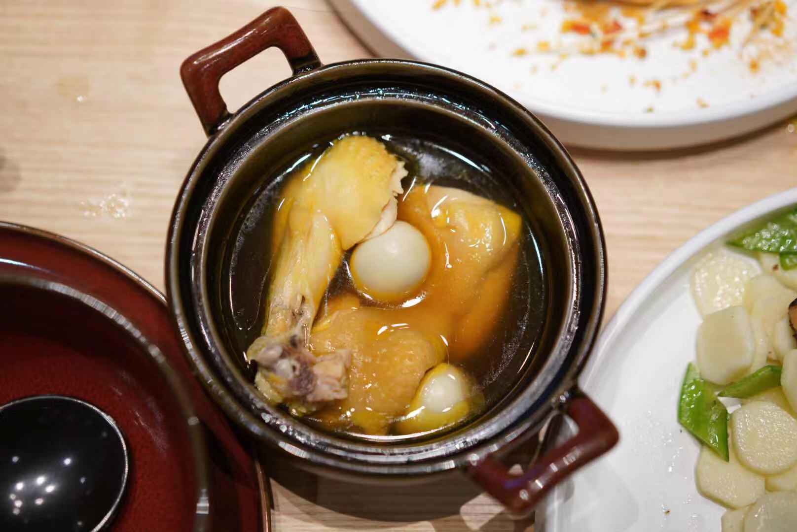 中国烹饪历史悠久,逐渐形成了中国八大菜系——浙菜、徽菜、川菜、苏菜、鲁菜、粤菜、湘菜、闽菜。其中粤菜就包含了客家菜与潮汕菜、广府菜。客家菜讲究酥软香浓、多用肉类以砂锅菜见长,保留着中原传统的生活习俗特色,重山珍,轻海味,重内容,轻形式,重原味,轻浑浊,重蒸煮,轻炸煎,乡土气息也是极为浓郁。但现如今在JFC就有那么一家一改传统客家菜形象,充盈着独具设计美感的山野风的客家菜餐厅—客汀。 【话梅薄皮核桃】摆拍精致到我一度怀疑这根本不是客家菜。✨皮薄如纸的话梅薄皮核桃含油量高,闻之香甜,吃起来还带有咸甜感。 【酥炸牛蒡】一上桌我还以为是小时候吃的红薯干,没想到是酥炸牛蒡,口感酥脆,最为磨牙小食极好的选择。 【盐酒河田鸡】出自长汀的河田鸡号称世界五大名鸡之一,鸡肉鲜嫩多汁、肉香浓郁。这道菜最为精彩的便是用客家酒酿烹制,米酒的香醇完全沁入河田鸡中,味香色浓,汤汁还可以拌饭吃喔。 【梅菜扣肉】无论是闽菜版的梅菜扣肉还是客家菜版的梅菜扣肉我都喜欢。以往的梅菜扣肉虽是肥而不腻但是一连吃好几大块多少都会觉得有些腻味。客汀根据女性怕油腻的需求进行创意改良,最终以春卷的形式呈盘。油炸后的饼皮油香酥脆、味香浓郁的梅菜以及肥瘦相间的猪肉三者的结合没有一丝违和,反而口感极为丰富 【山茶油泡猪腰】山茶油又称山茶籽油澄清透明,气味清香,味道纯正。 经山茶油泡制过的腰子不带一丝腥膻中,爽嫩顺滑 【虾仁酿羊肚菌】虾仁、羊肚菌、淮山看似普通的食材,虾仁剁成泥塞进羊肚菌独具创意。夹起一块羊肚菌入口满嘴虾仁的清甜与羊肚菌的清新味道;底部的山药片爽脆清甜。 【椒盐野蜂蛹】一提到蜂蛹满心觉得害怕不敢食之,但客汀色椒盐野蜂蛹第一眼精致的竟不像似蜂蛹,一连吃了好几块椒盐野蜂蛹,外面油香酥脆,咬下去会有微微爆汁,椒盐的调味不会压住蜂蛹的原始鲜味 【客家米酒】来客家怎能不饮酒呢,客家米酒是一种汉族传统名酒,历史悠久。客家人的米酒醇厚为底,呈琥珀色,清香扑鼻,甜腻入口,微微上头,令人回味无穷。 【火龙果酒酿汤圆】一直钟情于桂花酒酿小丸子,但吃过客汀的火龙果酒酿汤圆后我变心了~火龙果调味调色的酒酿汤圆酒香闻之浓郁但尝米酒味却淡了许多