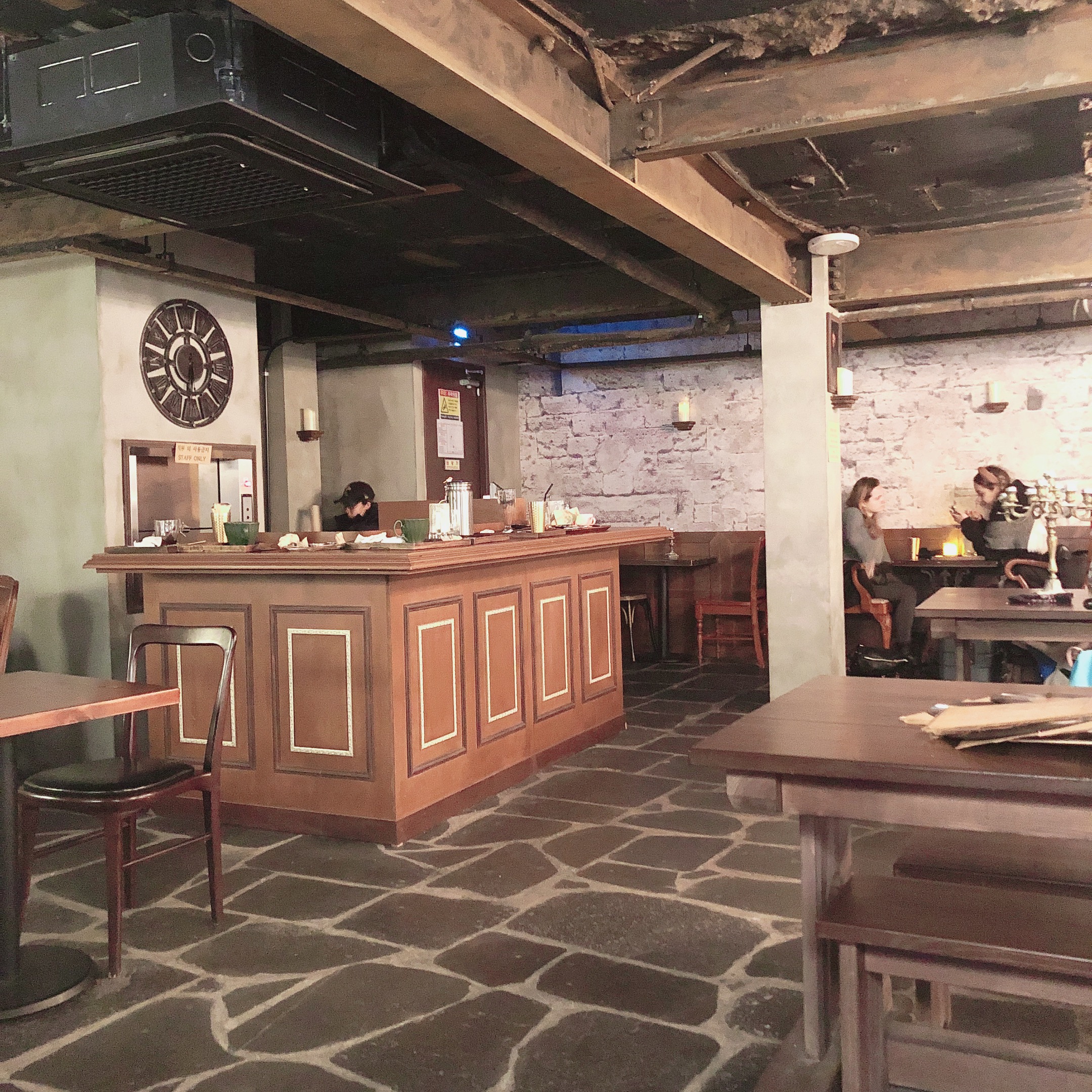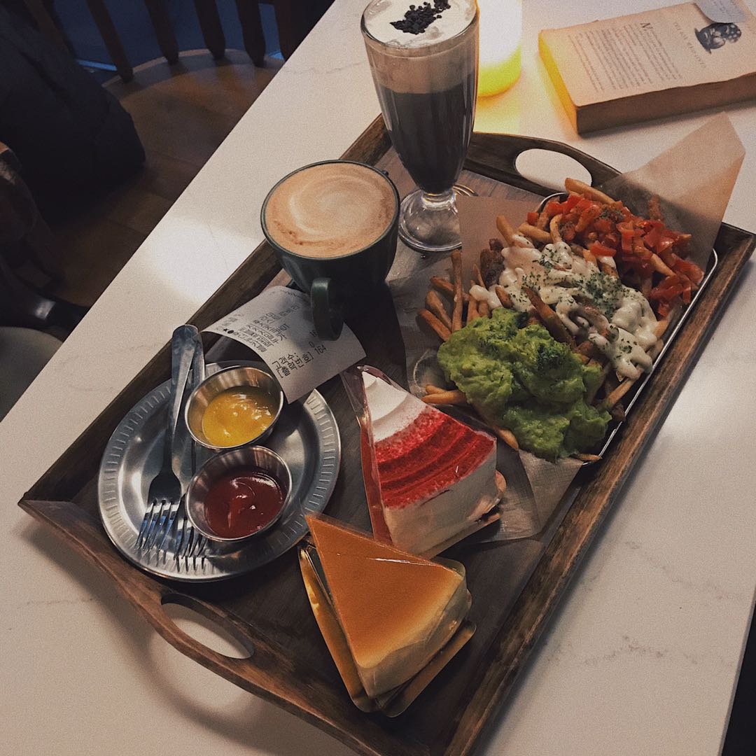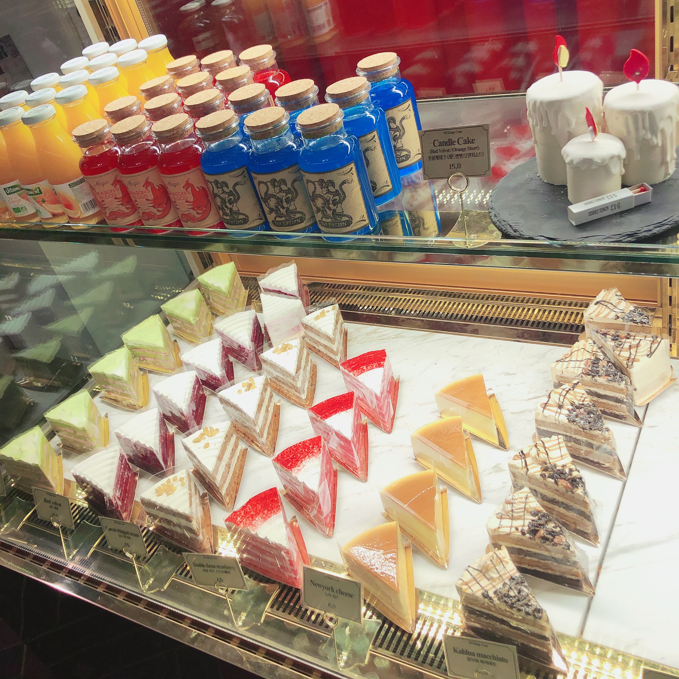 2019年的最后一天也不能忘了吃哈哈 中午吃完饭以后距离晚上跨年时间还有好久,本来打算在街上闲逛,但是首尔今天真的是太冷了 去了哈利波特主题咖啡厅,一共️四层,还有电梯哦,在里面拍照可以拍一天 本来只打算喝咖啡,后来看见蛋糕真的是没忍住,要了芝士和草莓 觉得还有点不够,还点了薯条 里面外国人超级多,都是哈利波特粉丝吧~~装修也是完全哈利波特主题,每层照相的人也很多 ps:芝士蛋糕超好吃