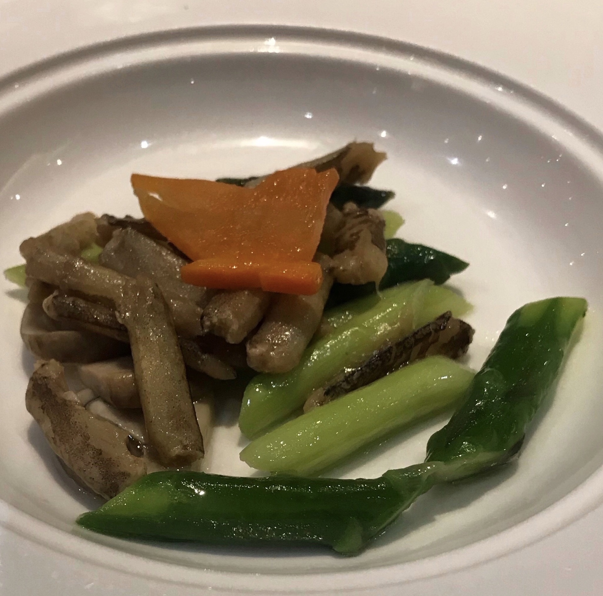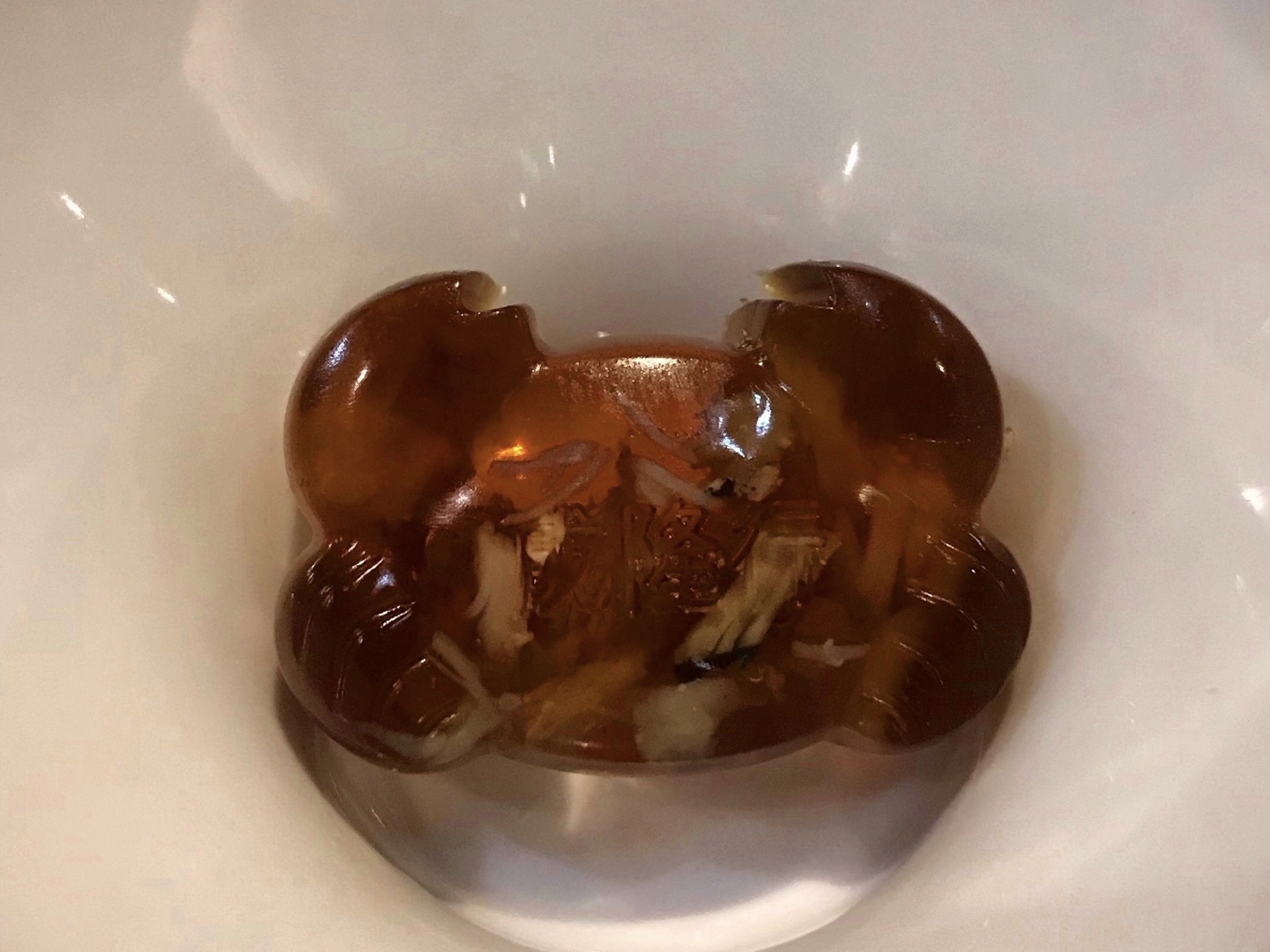 成隆行蟹王府是上海有名的吃蟹的餐厅,其黄浦区店被评为2020米其林一星餐厅,我们去的是徐汇区店,选择的是套餐。 冷菜三品,蟹肉冻、冰菜和醉鸡,只拍了蟹肉冻,上面有成隆行三个字。 蟹肉鸡头米汤,味道酸酸的,开胃 蟹柳芦笋,整条蟹腿,吃着过瘾 元宝虾 清蒸大闸蟹 焗蟹斗,满口香 蟹粉豆腐 清炒时蔬 蟹粉小笼 姜茶琥珀汤圆,加了姜,吃了蟹暖胃 最后还有时令鲜果。这个套餐是吃完一道菜,才上下道菜,看着不多,吃完也饱了,整体没有太惊艳,还算不错。