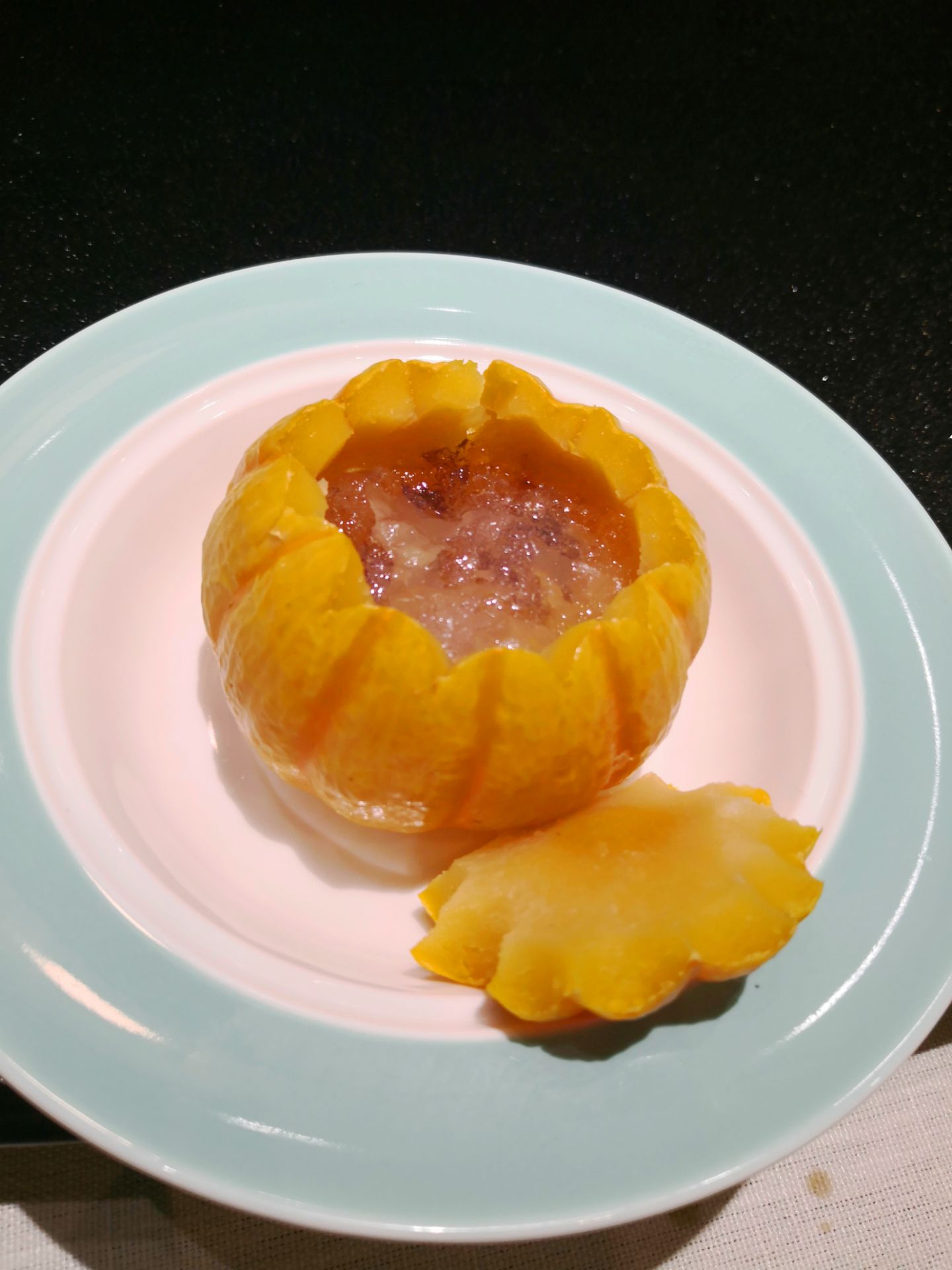 这家餐厅以金陵十二钗为主题,创作出各具特色的菜品,摆盘精致,件件都是一个艺术品。餐巾纸上面印的很精美的图案,舍不得用呢!餐前水果是放在一个精致的首饰盒里的,好想把它带回家!作为南京人最爱的鸭子,这里也可以吃到,盐水鸭做的很正宗。黄色的厚厚的盐里藏着盐水鸭,独特的造型吸引了我,想要吃着鸭子就得把盐包敲碎,只好忍痛敲碎。金陵不缺美女,来一碗燕窝,南瓜里满满的燕窝,入口即化,吃完美美的。听说这家的醉蟹相当有名,有专门的厨师做这道菜。一定要尝试,物超所值!吃了那么多家菜这家的菜心最让我难忘,菜名忘了,里面还有海鲜,非常鲜美,一盘根本不够吃,很好吃就对了!作为一家特色餐厅,我觉得吃的是一种情境,宴请宾客首选!
