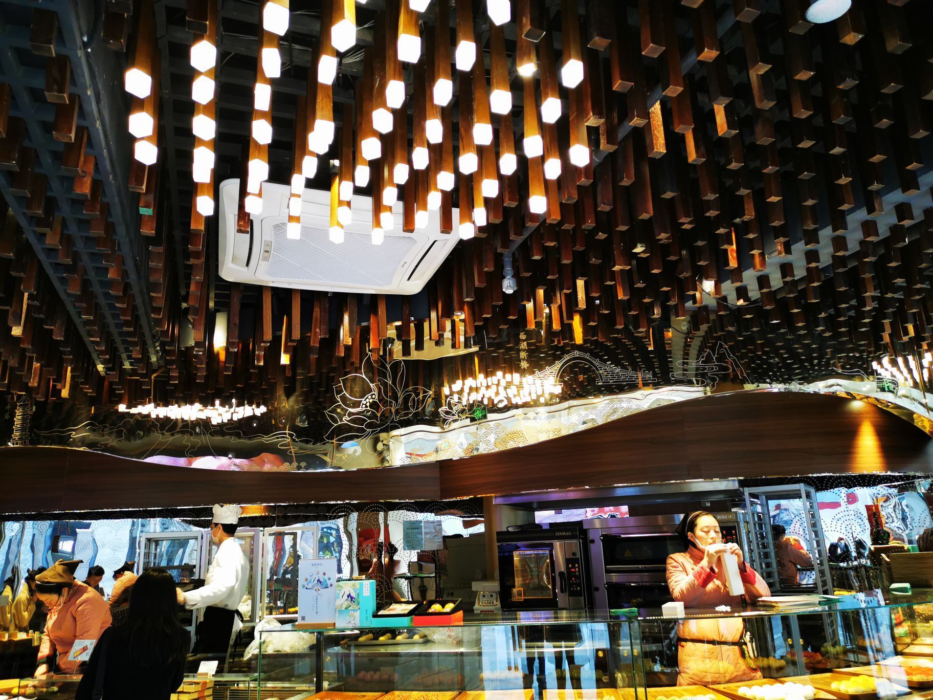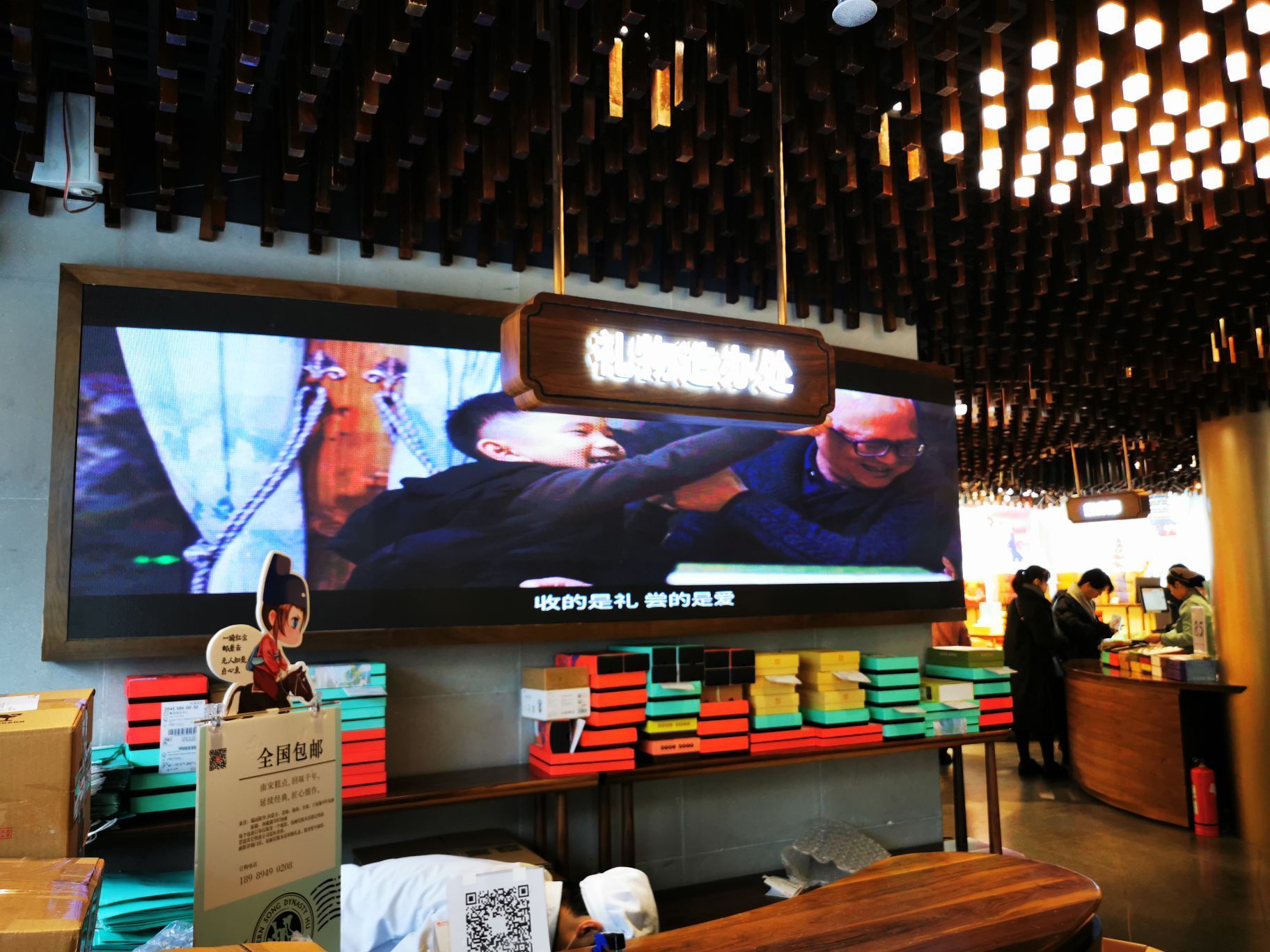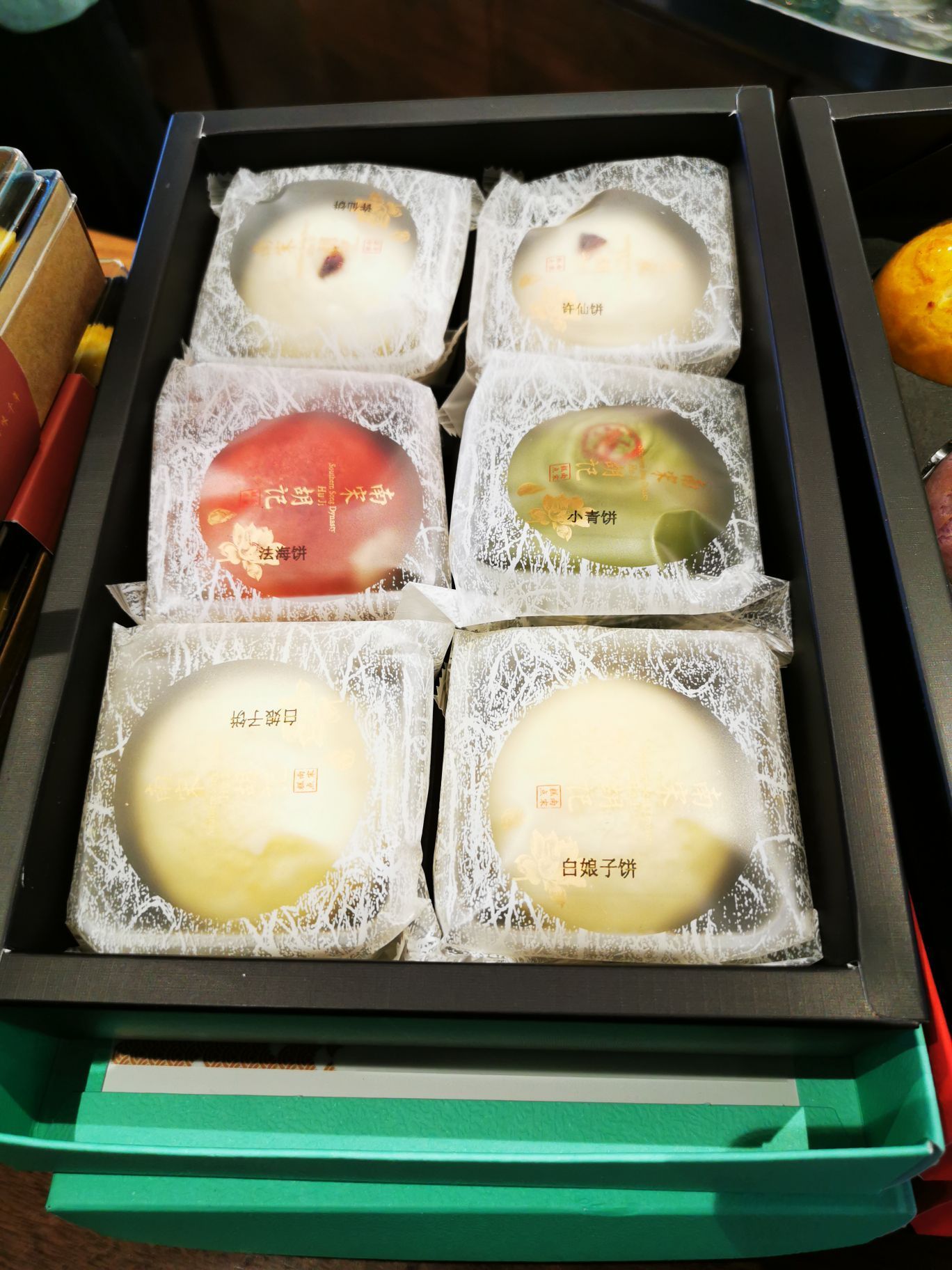 南宋胡记,专营杭州传统糕点,湖滨银泰D座,东坡路上,从来就大名鼎鼎,人气满满。 西湖之畔,游人如织,南宋胡记,作为伴手礼,确实很赞。 [薄荷]环境: 醒目的门头前面,是白娘子和许仙的Q版造型。 店内空间极其宽敞,密密麻麻的几何状灯饰,让景区原本昏暗的老房子,充满了热情的明亮,色彩斑斓的各种礼盒,在空间里俏皮地撞色。 透明的玻璃柜挡不住糕点的浓香,各类糕点大方免费试吃,垂涎欲滴,一饱口福。 [服务铃]服务: 服务员带着帽子口罩,卫生方面非常放心。招呼热情主动,欢迎顾客试吃,装盒、收银高效利索,连锁品牌服务,向来训练有素。 |绿豆糕组合^冰绿豆糕,软软糯糯,清甜细腻。 |白娘子饼^荷花酥售罄,于是换了白娘子饼。一盒三粒,白娘子饼、许仙饼、小青饼。 如蛋黄酥一般,白娘子饼层层酥脆,浓郁的芝士香,伴随着酸甜的蔓越莓粒。当中式糕点与西点经典元素结合,舌尖回味,流连忘返。 南宋胡记的礼盒包装都优雅精美,自己吃或送人两相宜。 当蒂芙尼色的手袋里,装上蒂芙尼色的礼盒。 南宋胡记,蒂芙尼色的杭州回忆,仿佛西湖盛夏的荷叶色,如此沁人心脾。