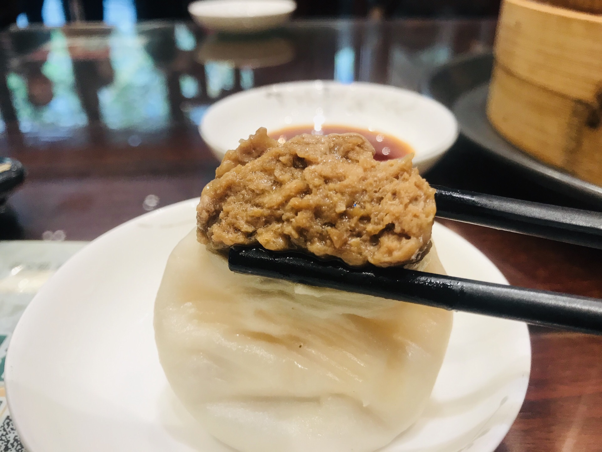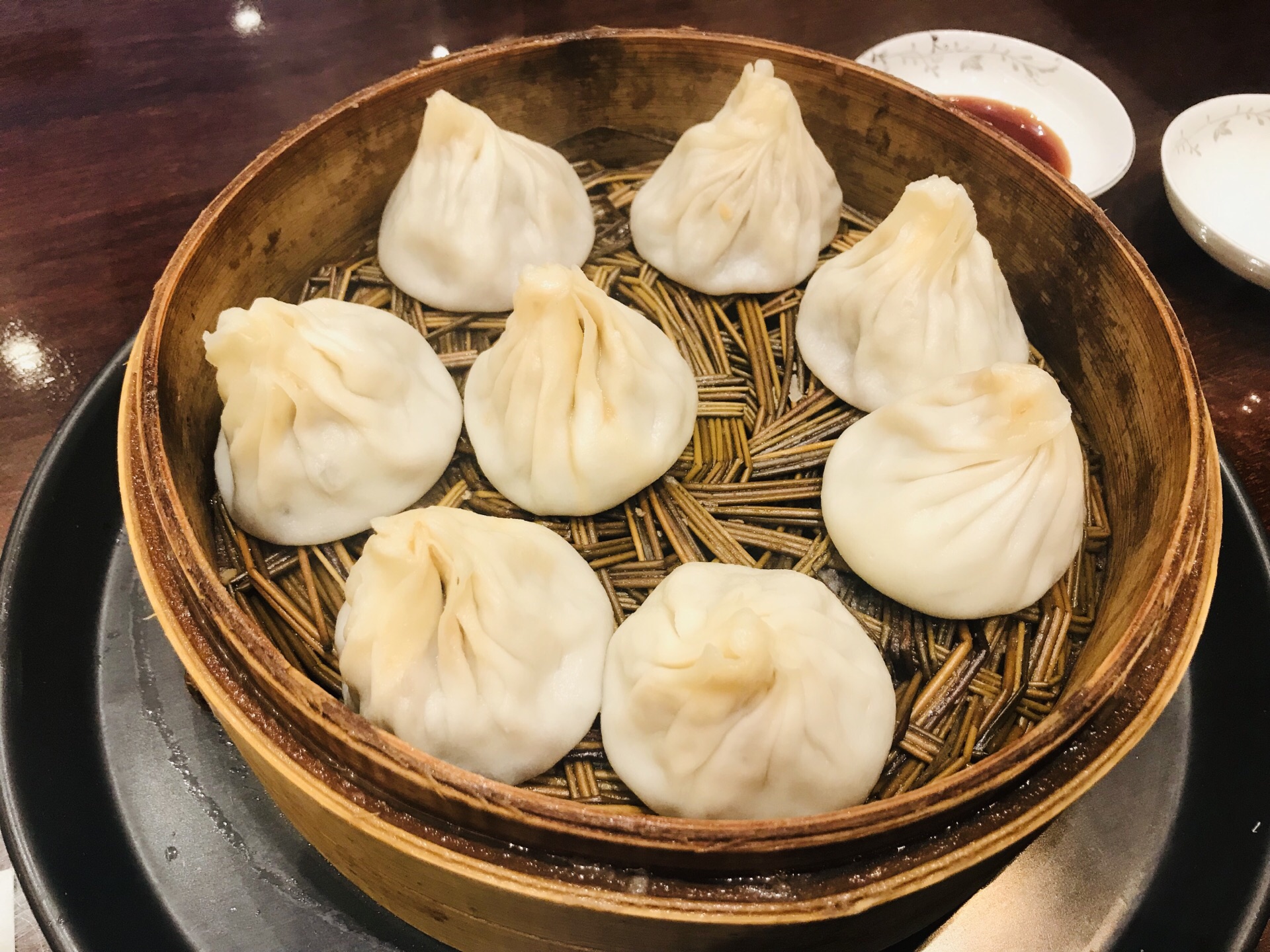 要说上海的无锡小笼哪家最好吃,那必须就是熙盛源了~ 曾经在无锡吃过的一家老店,开到上海后只此一家店面,重点是还开在家附近,实在是太幸福了~ 店面虽然不大,但是生意真的超级好,店内基本上是座无虚席的节奏,饭点的时候肯定是需要等位置的~ 不过这次来发现小笼涨价了,之前是10元/4个,现在是12元,不过毕竟现在成本上涨的情况下,保持口味正宗最重要了~ 小笼的话是下单后排队领取,下单的时候说成了两笼,收银台的小姐姐还会及时提醒下,所以建议直接说要几个就好了~ 排队的话基本上十来分钟就会出来很多笼的节奏,如果是4个的话服务员会帮忙夹到小碟子上给你~ 然后自己拿着小笼回到自己找的座位就可以啦~ 桌上都有配置醋、筷子和小碟子~ 小笼的话咬开一个口,里面的汤汁是真正的甜而不腻~ 肉馅是属于非常结实的类型,但是一点都不会觉得肉柴~ 基本上来上4个就相当满足的节奏了~ 如果喜欢吃小笼的话这家店绝对不能错过~ PS:这边还有馄饨之类的可搭配哦~