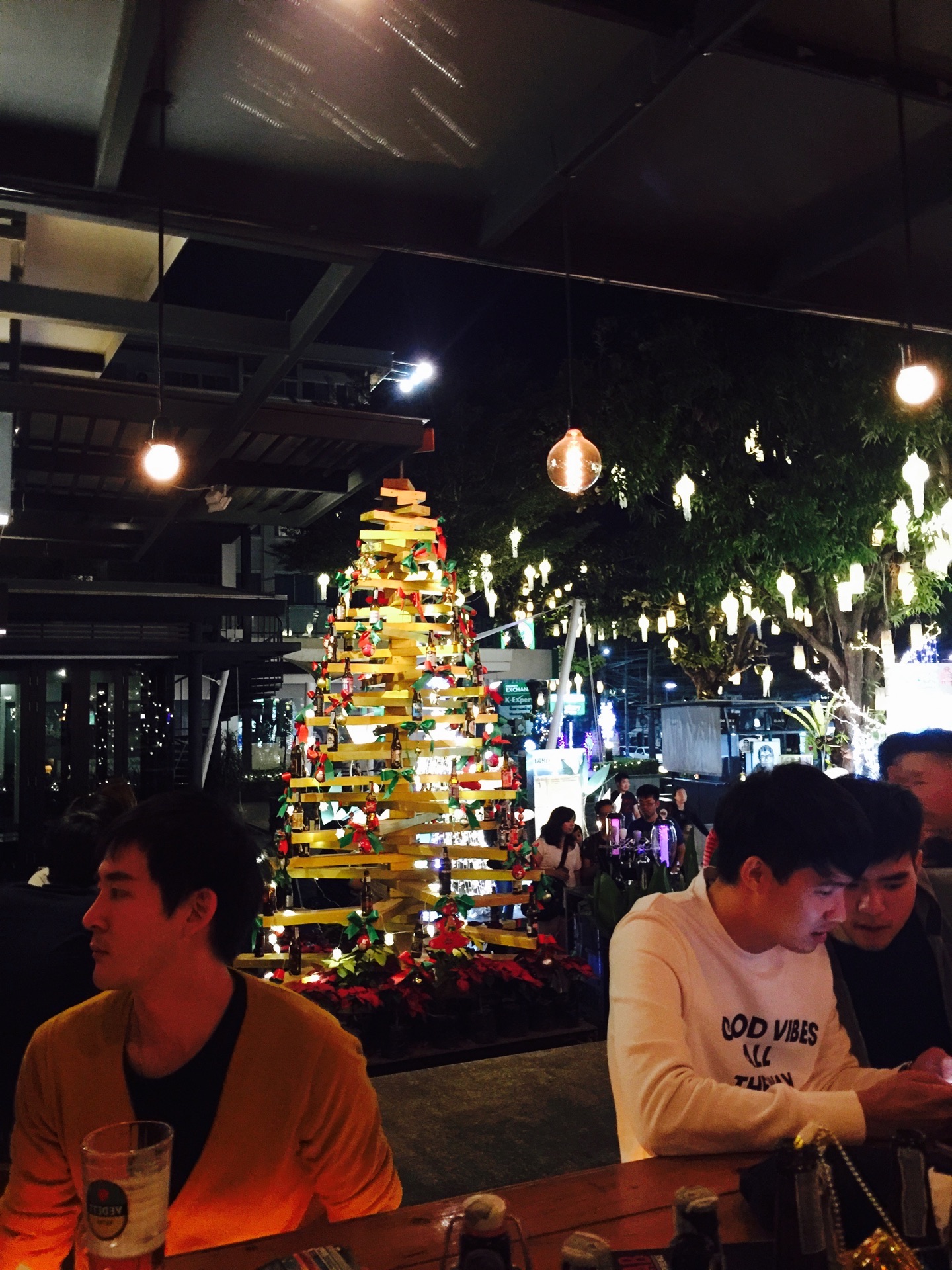 老外也挺多,很多人自己要个啤酒吹吹风听听歌也还不错。价格不便宜