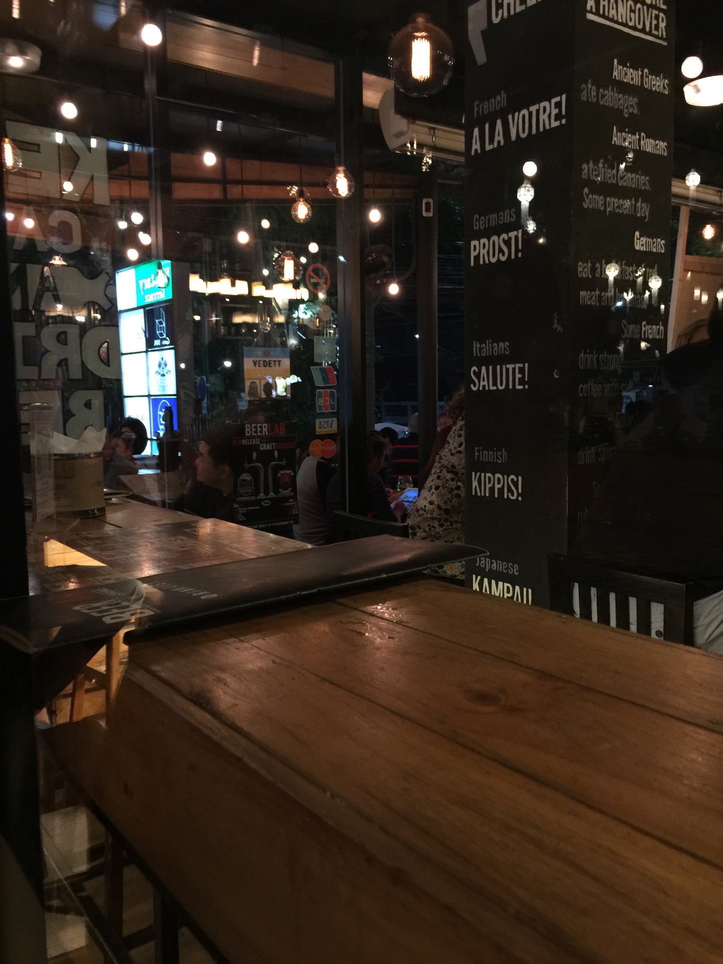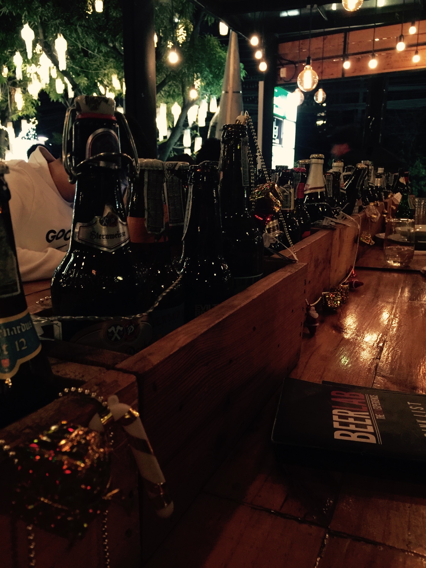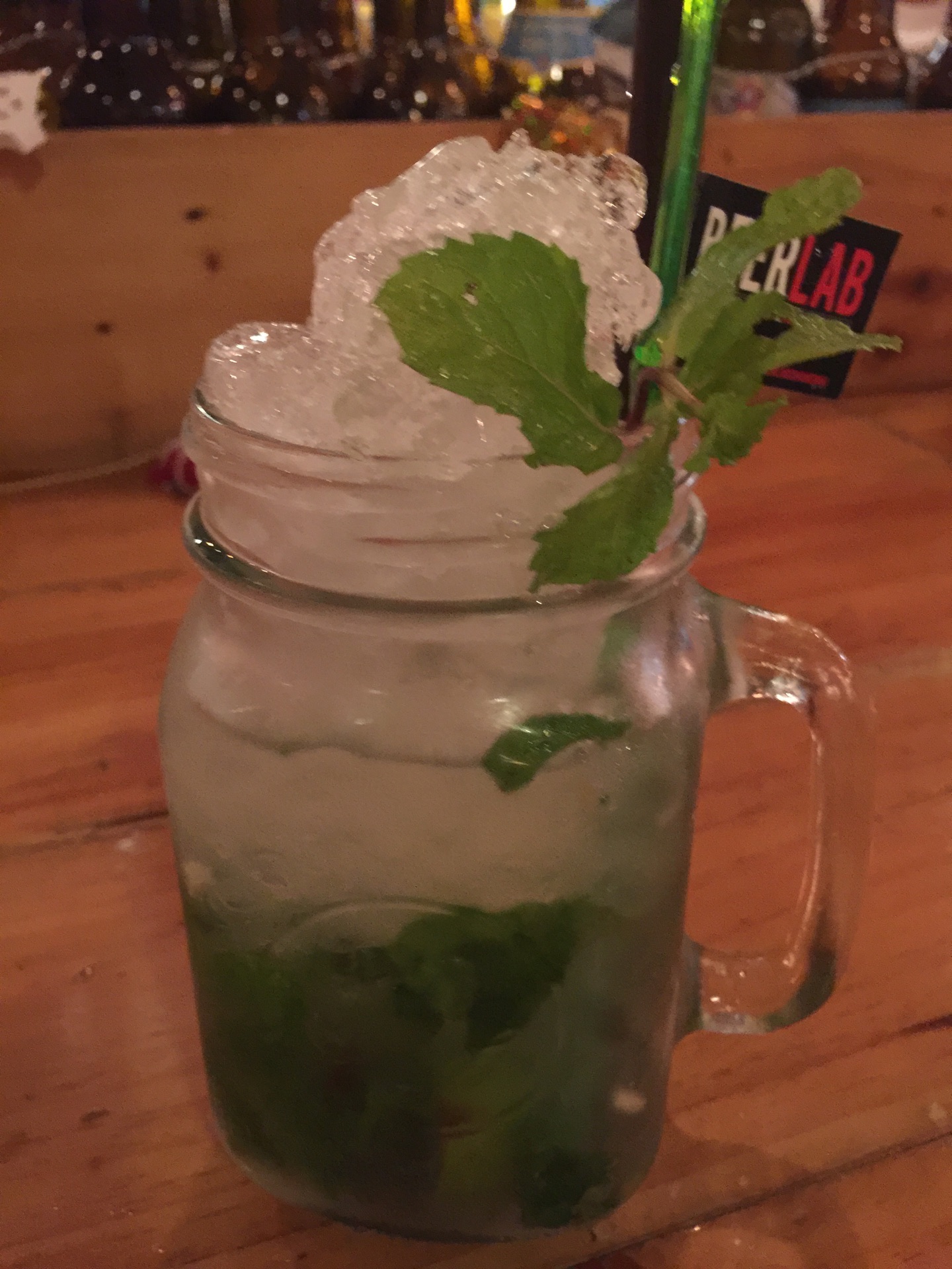 在宁曼路上的一家酒吧,离住处不远之前路过看到门口的DJ气氛不错哦,而且也不算太吵,室内室外都可以坐,地方还挺大。晚上将近11点去的,但是都没怎么有座位了,没有服务员主动上来引导,还是我们找的服务员,最后只得坐在了吧台的地方。老外也挺多,很多人自己要个啤酒吹吹风听听歌也还不错。 服务员不会说中文,要了莫吉托和百利甜,莫吉托太酸,而且上的非常慢,可能是人太多的原因吧,整体气氛还不错,可以来小坐。价格不便宜