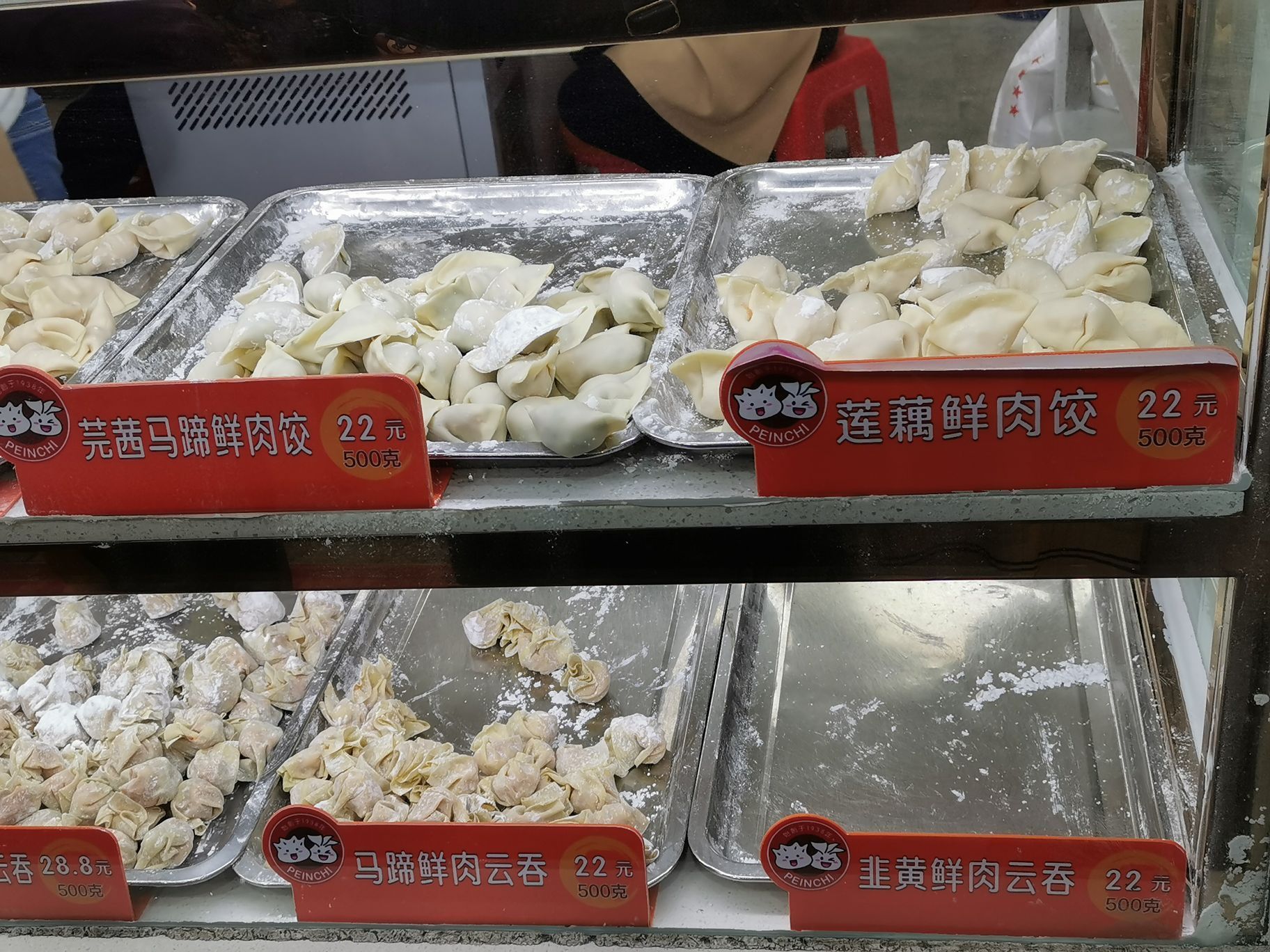 德政中路每日排长龙的饺子铺 每次经过用见到这里有不短的队伍,这次终于自己来试一试。 炳记在广州已经来了好多年,都是做手工饺子和云吞。 各种口味的饺子 能有20多种吧,店家还不时推出新口 可以透过玻璃窗,看到师傅一直在里面包饺子! 鲜虾蟹子云吞,28.8一斤,回家煮了吃,真的有一整只虾和满满的蟹子,肉,吃得出来很新鲜。 紫菜猪肉饺子,紫菜爽口,加上猪肉的口感,很不错。
