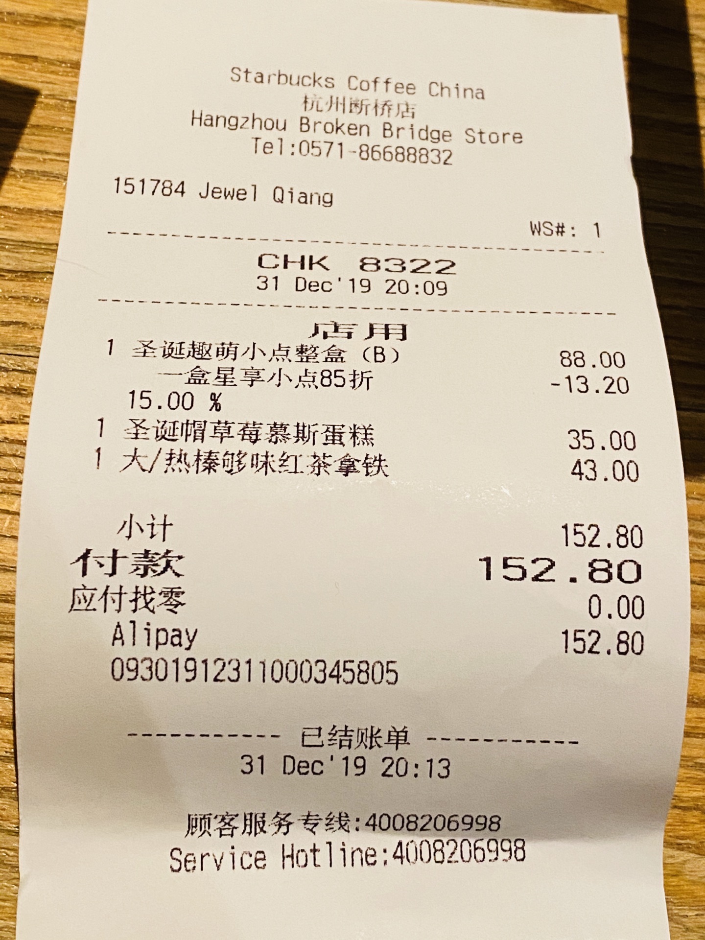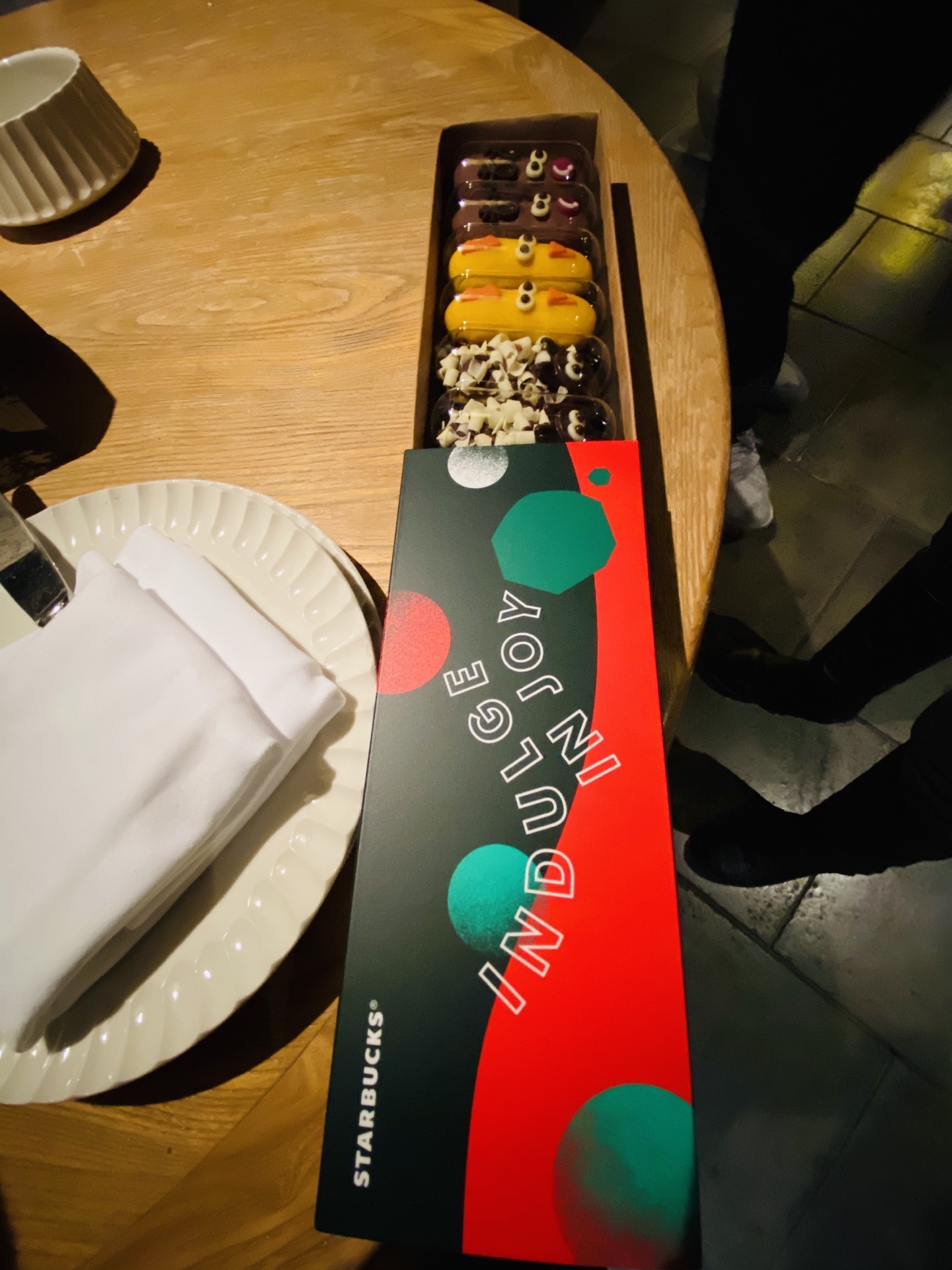 圣诞越萌小点整盒(B)88元 盒星享小点85折减去13.20 看上去小可爱们颜色不一样, 不一样诱人的一个个造型好吸引, 于是就来了一盒,然后实在不推荐。 圣诞帽草莓慕斯蛋糕35.00 看着可爱的身材忍不住点进来试试 普通的味道,不推荐大家吃。 1大/热榛够味红茶拿铁43.00 还好这杯拿铁还是在线的 小计152.80