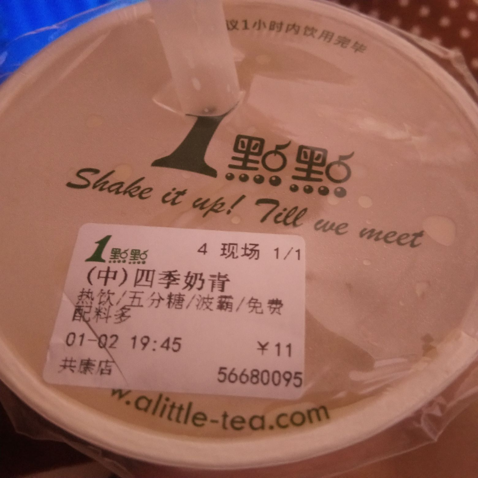这四杯奶茶是不同日期出自同一家奶茶店,那就是共康路店1点点的外卖。 嗯,我是不能没有奶茶的,包括肚皮查不出原因恶痛的今天。 反正也不用出门,外卖直接送到家很方便,1点点的波霸我很喜欢,每次都会要求多加,而且凭我的胃口,不用担心我一杯下去饭就吃不下,我从没这种困扰。