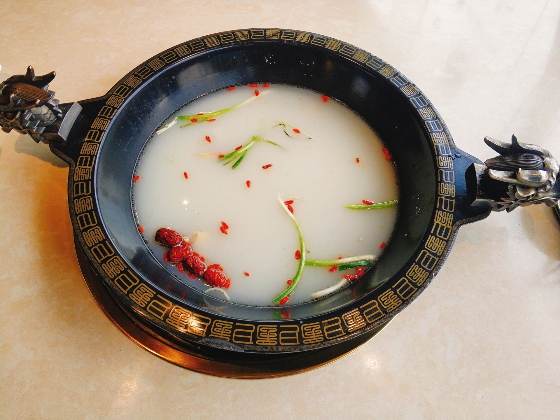锅底要了老妈蹄花高汤,确实很鲜美,而且不腻味,有大约4大块猪蹄,吃起来还是挺过瘾的,点了手切鲜羊肉,挺嫩的,但是稍微有点柴,其实羊肉还是要肥一点好吃,其他涮菜品种挺多,中规中矩,值得推荐的是这家的炸豆皮,很有嚼劲,烫的时间略长也不失口感,他家工作日的午市套餐性价比还不错。