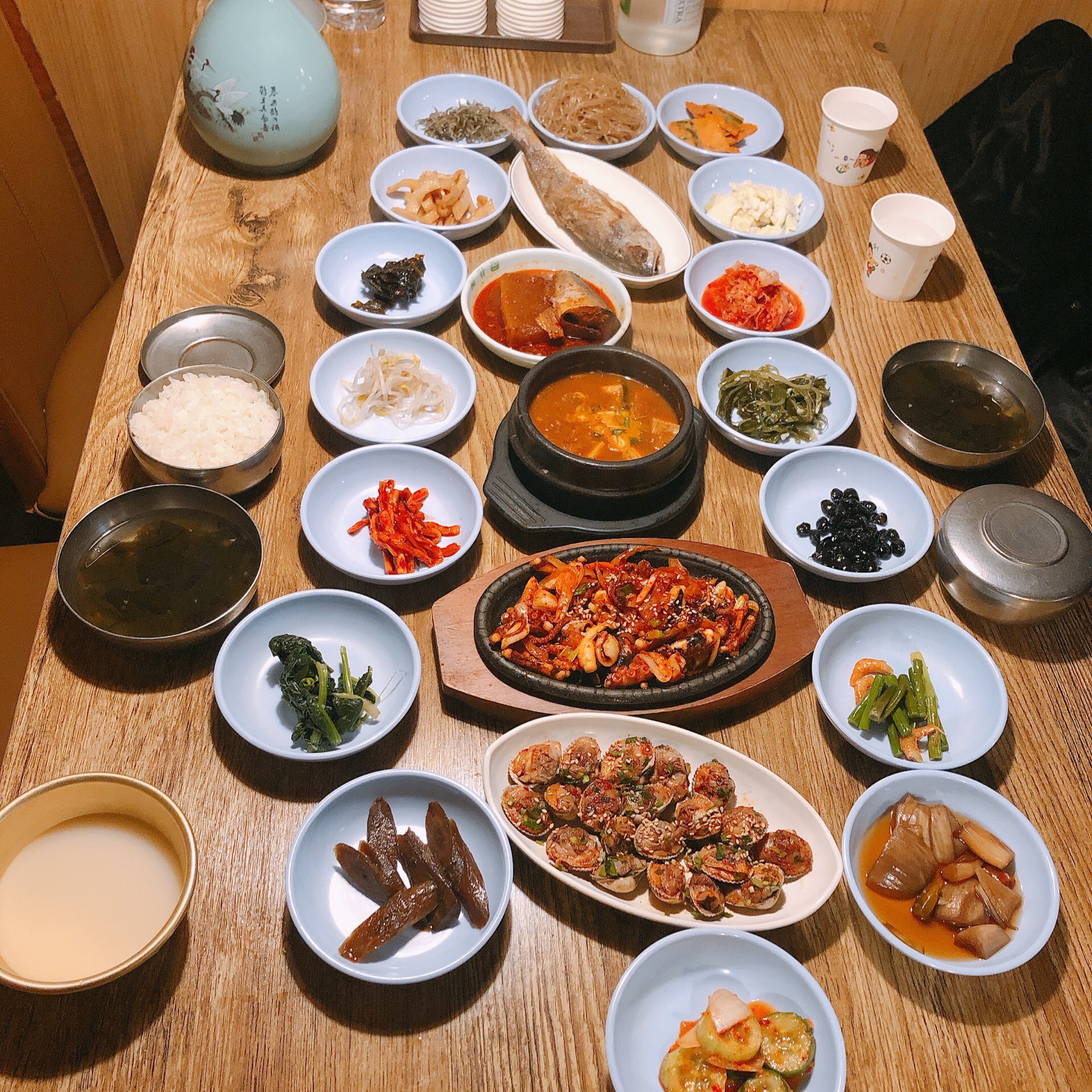 随便转了转就去吃了超级地道的韩定食~✨丈母娘家✨ 味道真的超级赞的,腌制的黄花鱼,花甲还有鱿鱼...