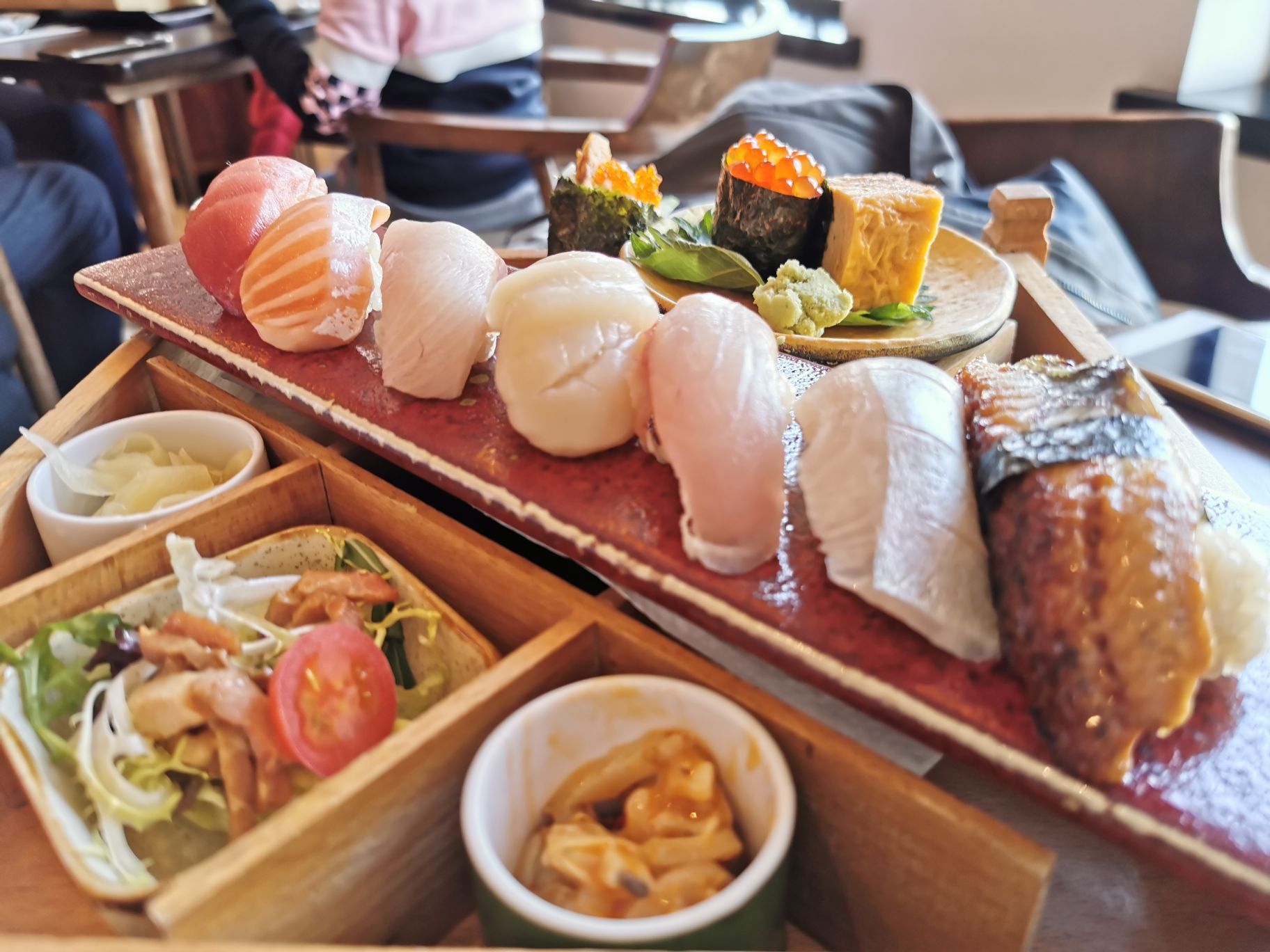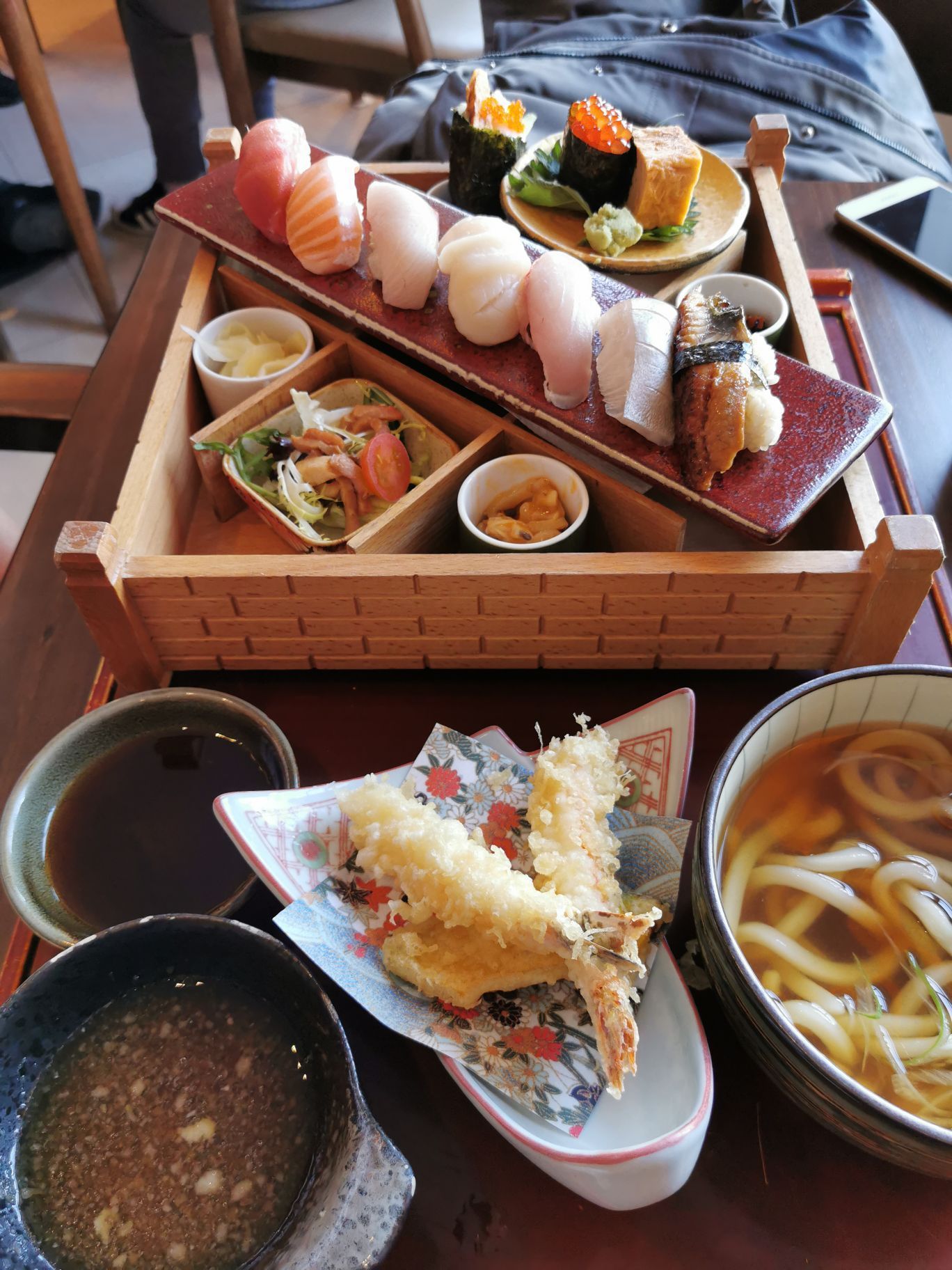 基本上每次来城隍庙就会来东京和食,而且最近元旦第一天也都会来这里,算是迎新的一部分吧。 这次过来体验不是特别好,吃的东西倒不错,就是服务上和以前有点变化,首先会员优惠的方式改动了,每个人都要用会员且不可累积。另外这次过来除了门口排队很久,点了个寿司套餐也等了大半个小时,捏个寿司也能这样真的很不满意啊。 吃的是寿司套餐和便当套餐,东京和食的寿司一向是不错的,鱼肉品质很高,而且入口非常的鲜美。便当套餐纯粹是被新加入的海鲜饭给吸引了,这个盖饭真的很漂亮,还有海胆和蟹腿,很不错,强烈推荐。