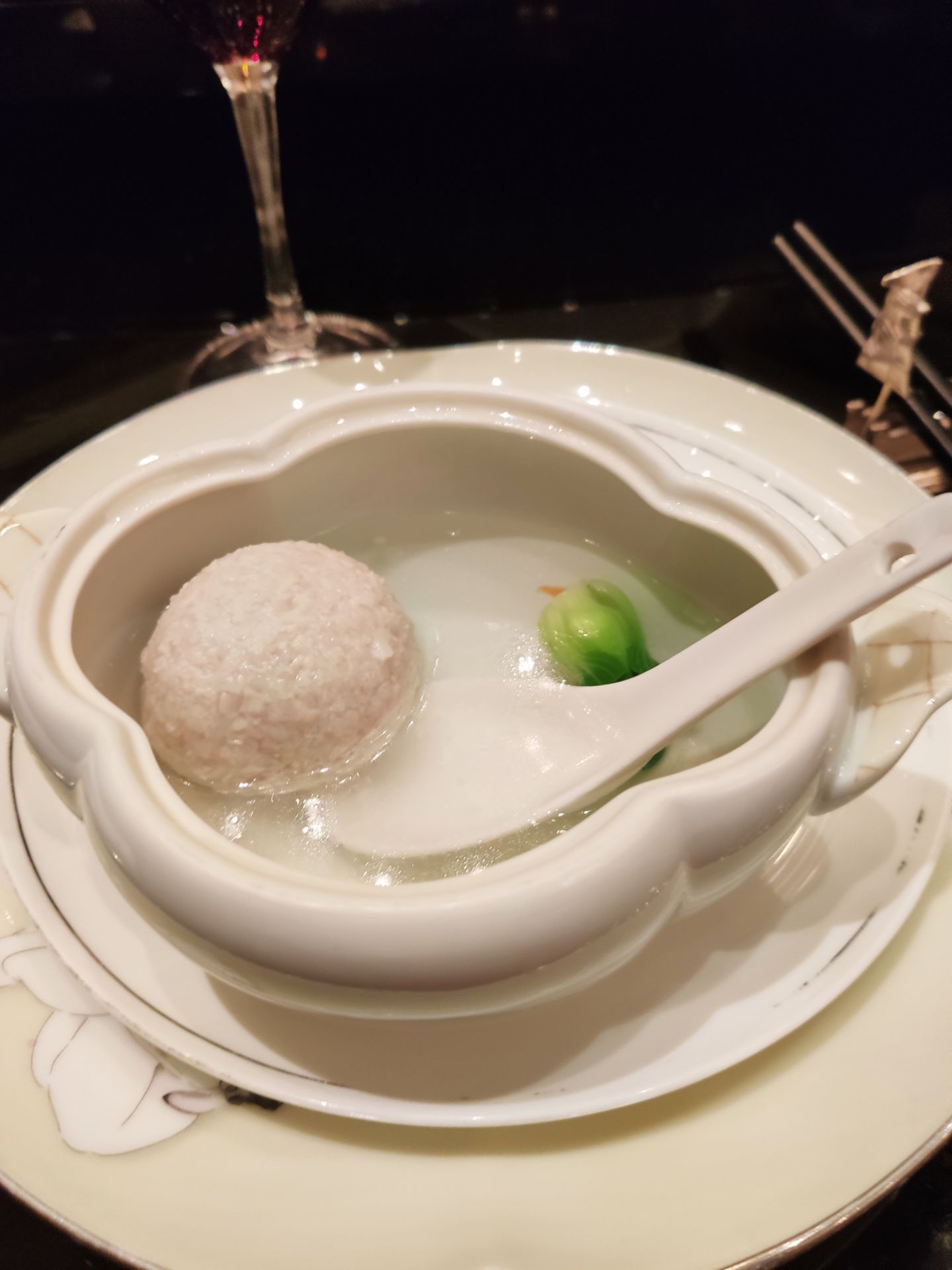 前两天刚去了一次,据说这家店跟米其林星级沾边。吃过之后果然如此。饭店硬件过硬,坐落位置一流,窗外就是外滩江景。淮扬菜代表狮子头鲜嫩不腻,口味好过杨州饭店。大号牛肉粒嫩滑汁浓入味。鲍汁花枝片无腥,糯而味浓。最爱甜品葛仙米炖梨,照片上已将梨吃了才想起来拍照。服务员也很勤快,换了快10次碟子。总之,留下美好印象,是招待客人的好选择。