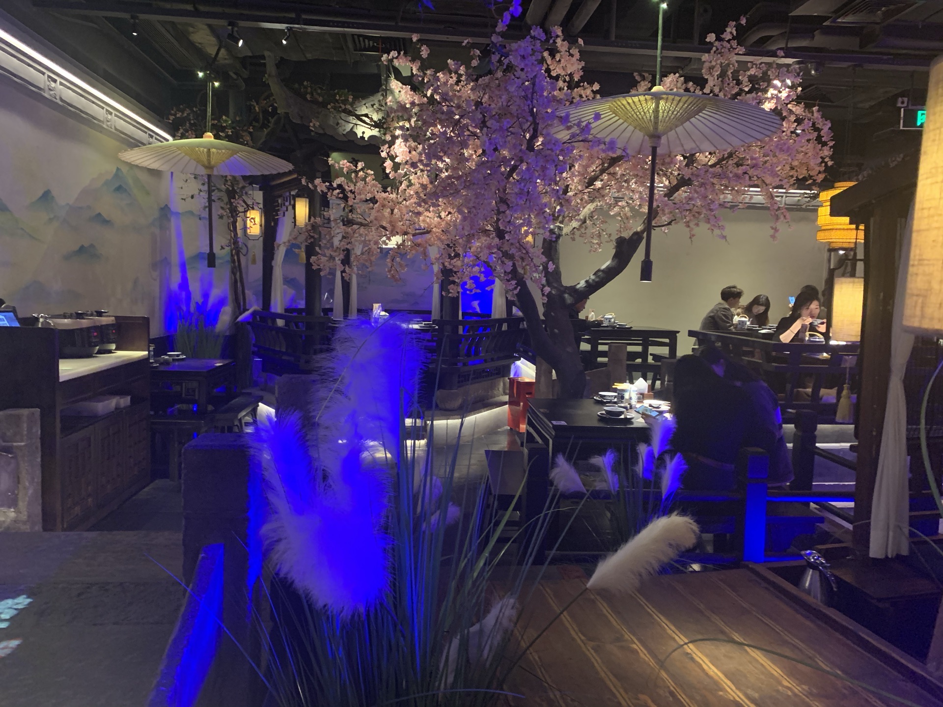 工作日中午的生意很好,周围白领午餐好选择哦,人均40-50元可以吃饱吃好。 二维码扫码点单和买单和开发票,一气呵成哦。 杭帮菜的味道都还不错的,环境很有意境,有船和桃花。 很中意的是焗番薯,8元一个。好吃!还有脆皮鸡。皮很脆呀!