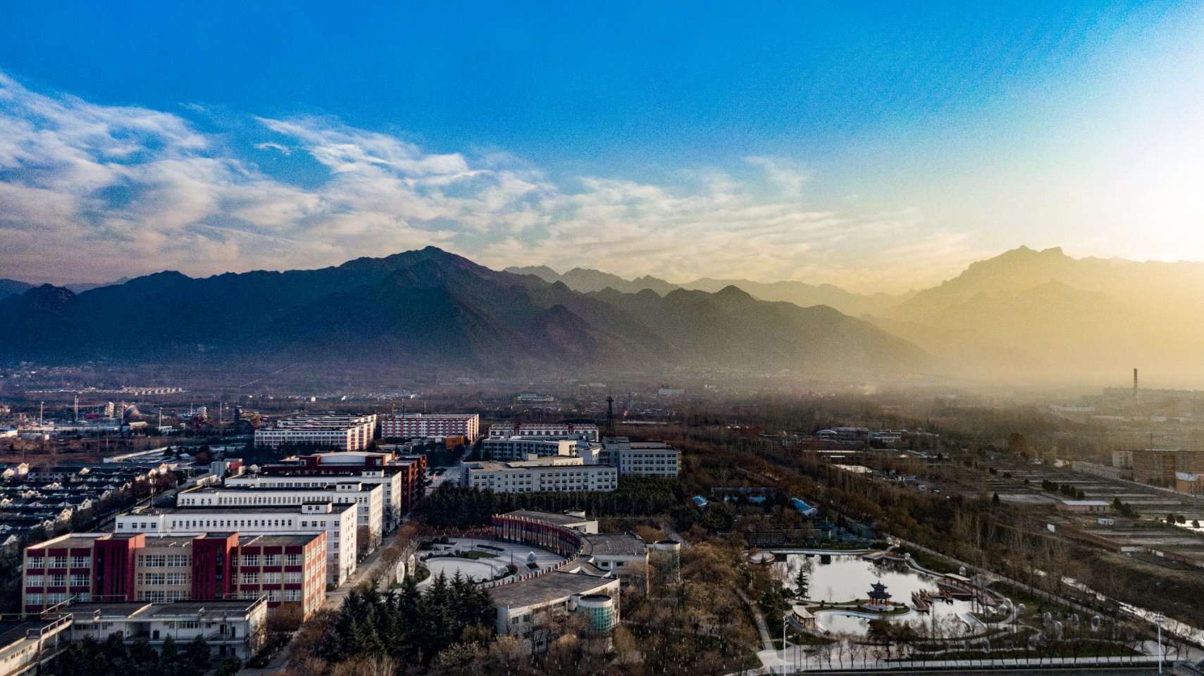 一个字,美,尤其是学生餐厅和百合楼,背后沣河路沿沣河贯穿校园,直通明德湖和芳菲苑。