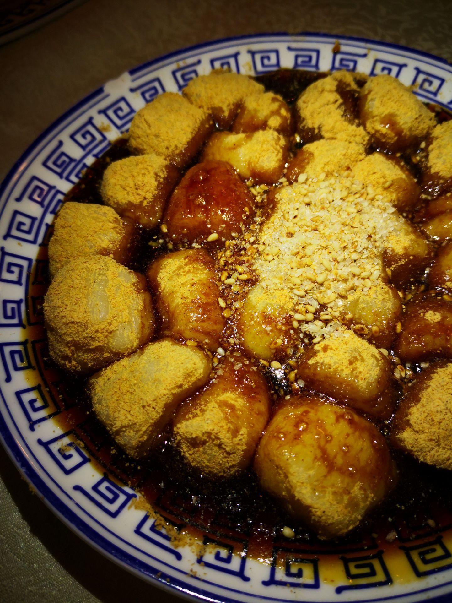龙森园火锅,成都火锅界的一朵特别的花。 只开一家店,就在琴台路,不加盟也不开分店,几十年只认真做好一家店,真的和成都的其他店完全不同。 环境,开了那么多年,有点点显旧,灯光明显感觉有点弱,比较影响拍照,还好小伙伴随时能拿出手机打开手电筒。 菜品 凉拌血旺,这个属于餐前小食。鲜嫩的血旺淋上香辣的辅料,端上桌不要着急吃,让它慢慢入味。自己也可以用小勺子把调料淋在血旺上面,但是一定注意切勿张嘴。我怕桌子会打湿[调皮]。 红糖糍粑,糍粑小块,和一般火锅店内的外形不一样。没有焦硬的外皮,重点是红糖黄豆粉是给够了的(普通店的红糖就淋在糍粑上或者拿一个小盘子装点蘸这吃)。每一块糍粑都裹着红糖和豆粉,进嘴的口感和味道那叫一个满足呀。 火锅菜品当然还是独爱荤菜,排骨,牛肉,鹅肠,腰片都非常巴适。 琴台路因司马相如和卓文君的爱情故事而出名。我在琴台路龙森园吃火锅,烫腰花,无意中发现碗里的腰花变成了一只凤凰。是不是非常的神奇。这张照片我会一直保留着。这算是来琴台路收获的意外礼物吧。