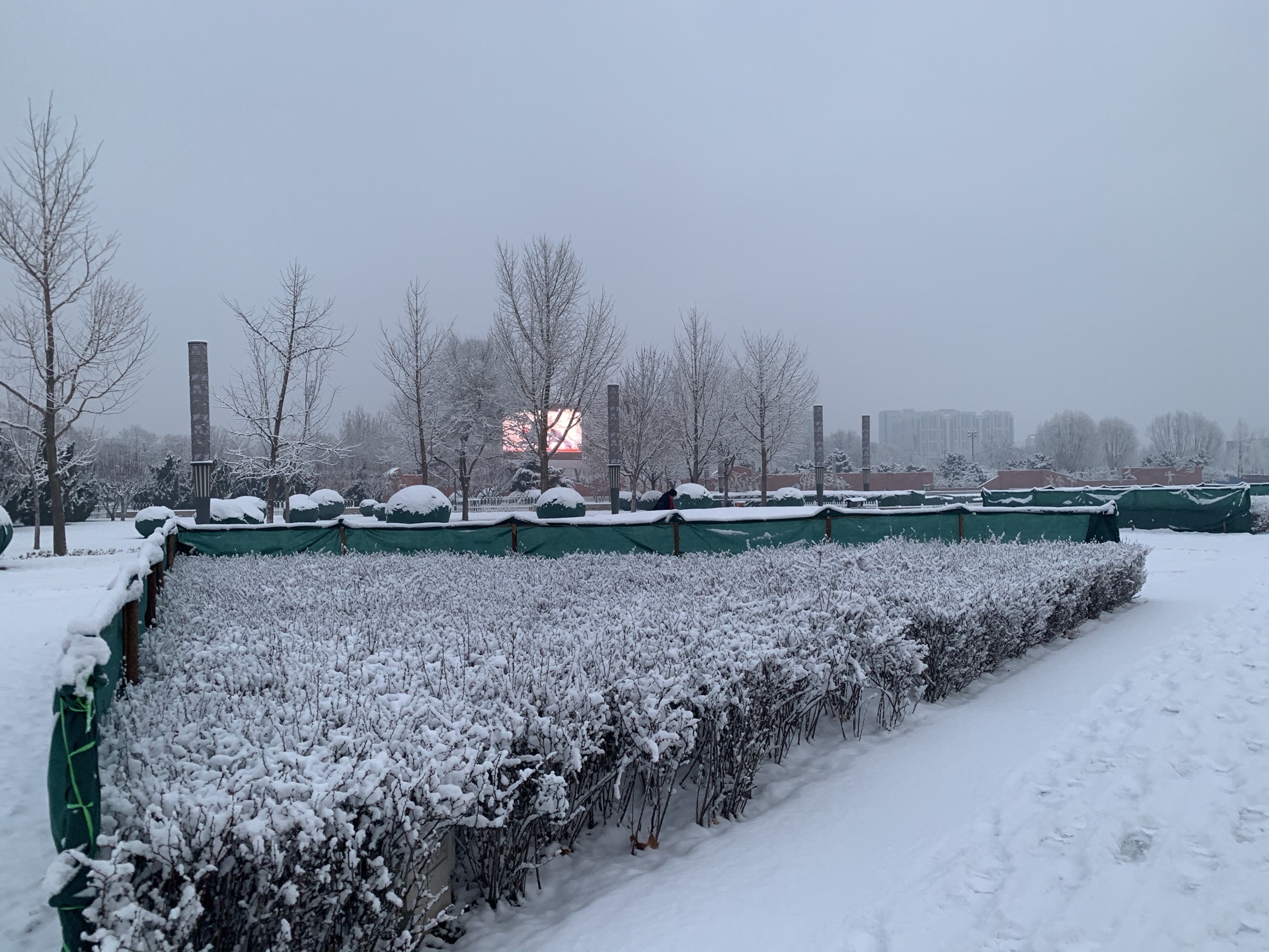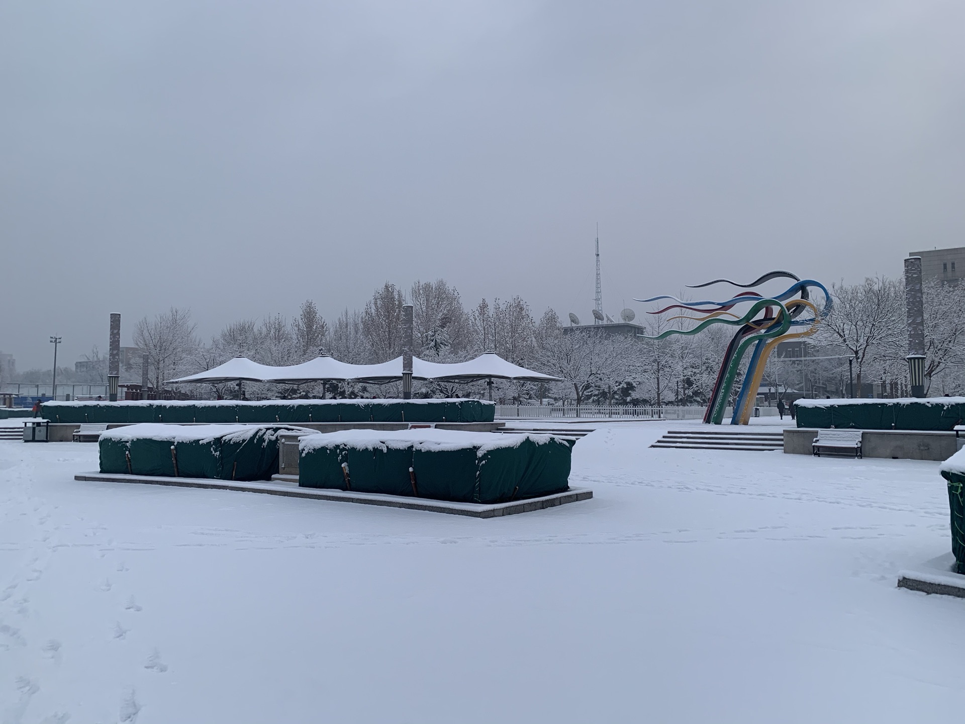 2020年北京的第一场大雪,永安公园白茫茫一片,没了晨练的人们,没了广场舞音乐2020年北京的第一场大雪,永安公园白茫茫一片,没了晨练的人们,没了广场舞音乐。突然安静下来的公园,一行行过客的脚印,清晨匆匆依旧。