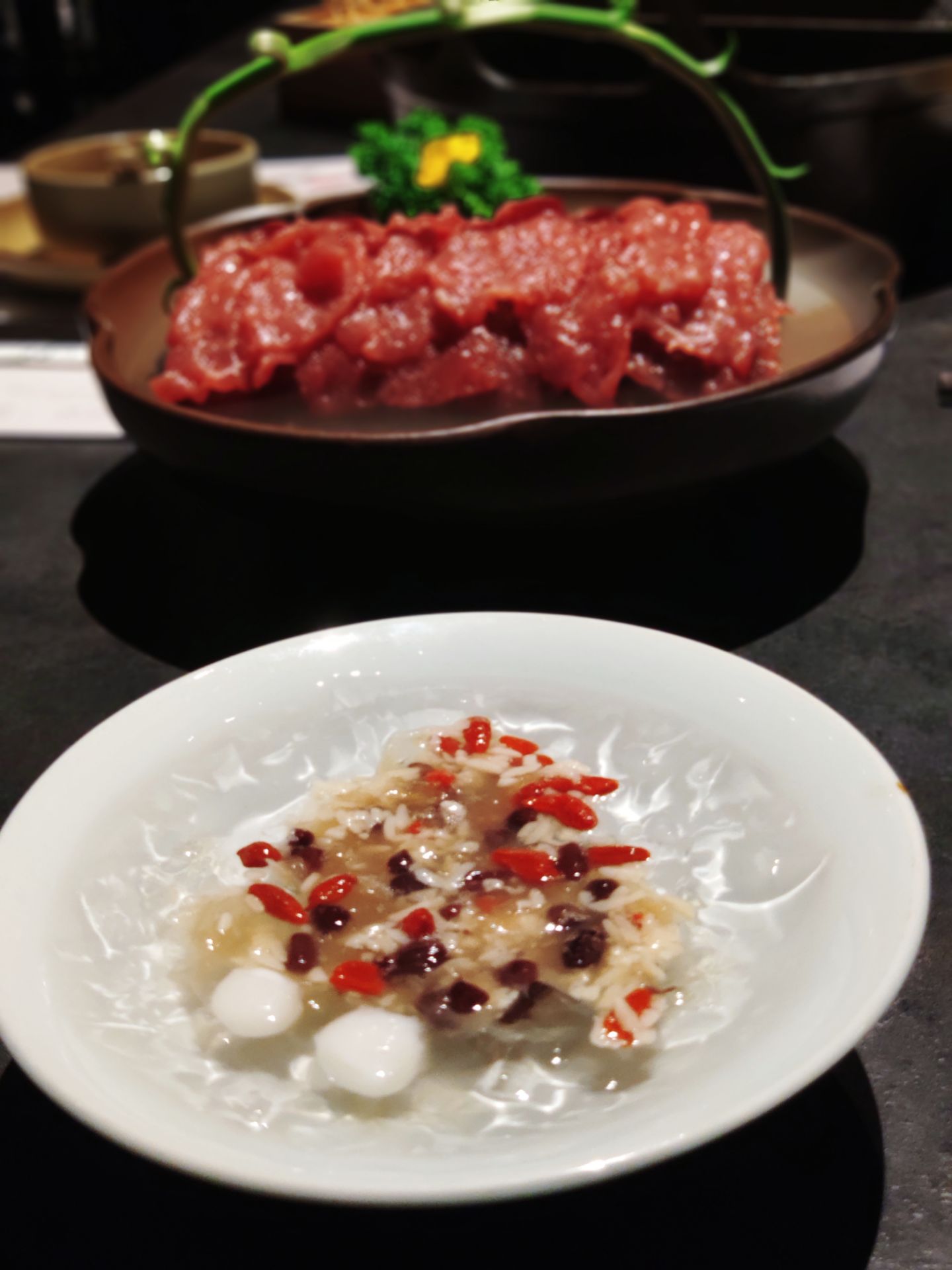 装潢讲究,用餐环境舒适,分门别类的酱料陈列整齐,位置空间也挺大的尽膳口福跷脚牛肉。火锅位于建发JFC品尚中心a馆四楼最角落的门面。 装潢讲究,用餐环境舒适,分门别类的酱料陈列整齐,位置空间也挺大的。 老鹰茶汤说是有去火功效,茶饮和加汤都用的这个。 九秒牛肉鲜,嫩