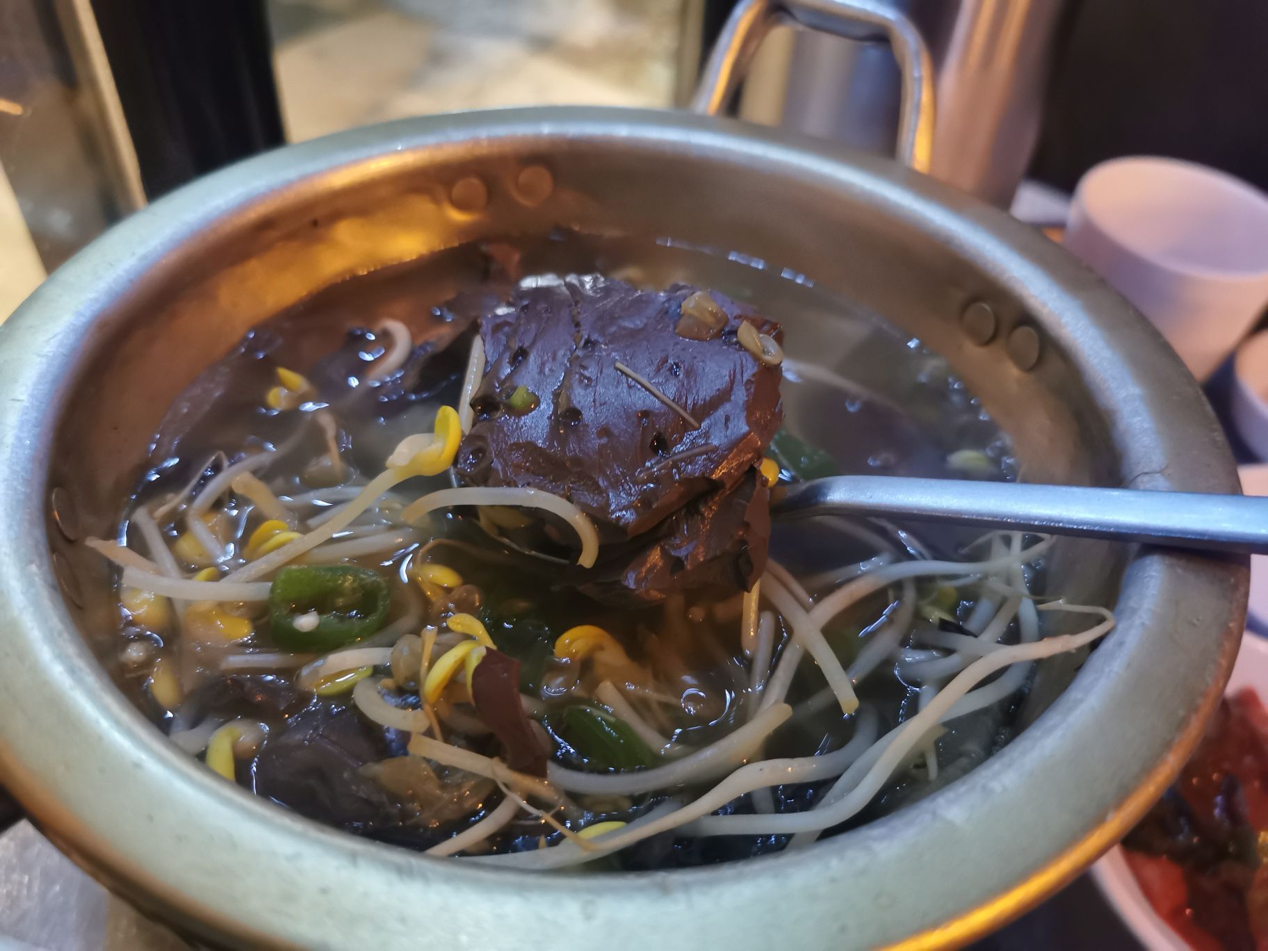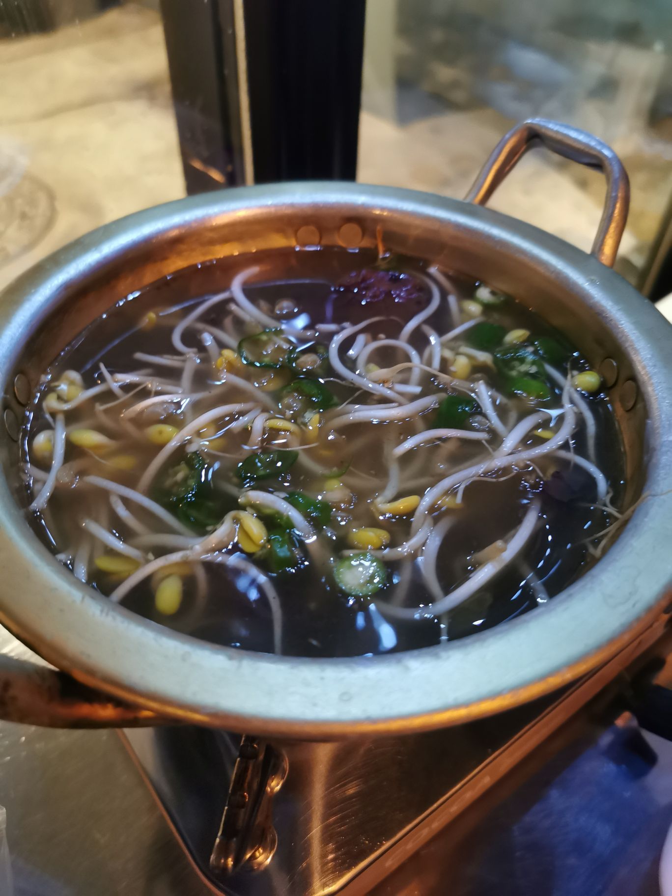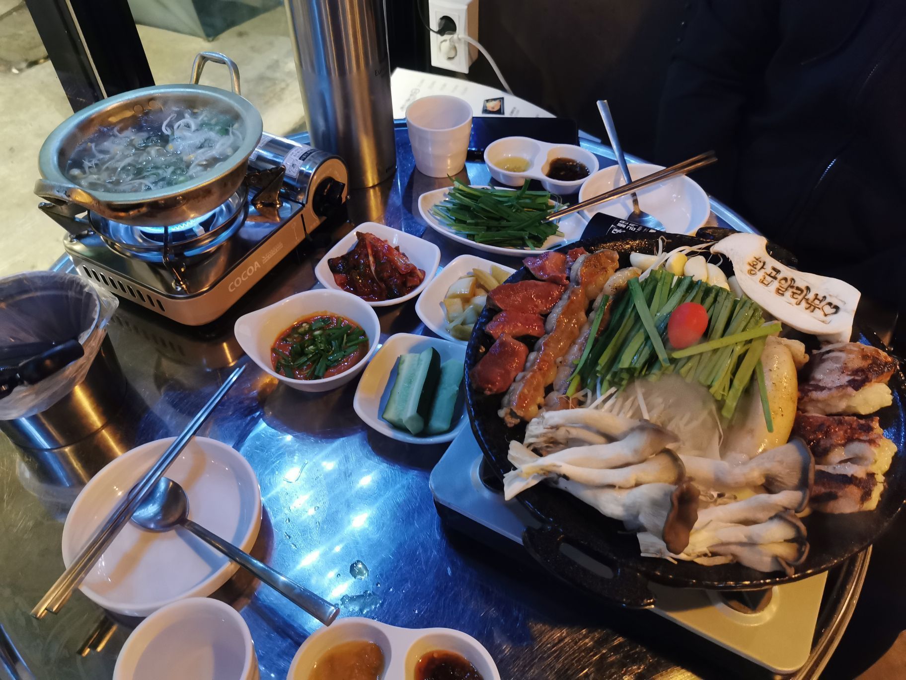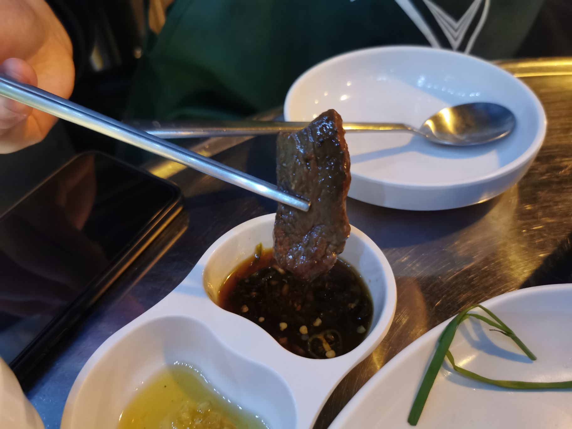 韩国人除了烤肉以外,非常喜欢烤牛肠。我也是来韩国以后喜欢上了这个味道。 弘大这家的牛肠店,韩国比较接地气的店了,经常爆满,我们特意早早去的,虽然店铺不大,圆桶和圆桌的标配是韩国人喜欢的感觉。经常很多人一起吃着牛肠喝着酒非常适合聊天约会。店铺里有中文菜单,我们点了两人份牛小肠,小菜和牛血汤都是送的。牛血汤有一点青辣椒,微辣爽口。牛小肠摆的太好看了,老板帮我们把它剪好又摆好了,还告诉我们先吃哪一部位后吃哪一部位,沾着酱汁更好吃呢!!! 最后一定要来个炒饭,香的不行,我们俩人点了两份炒饭~