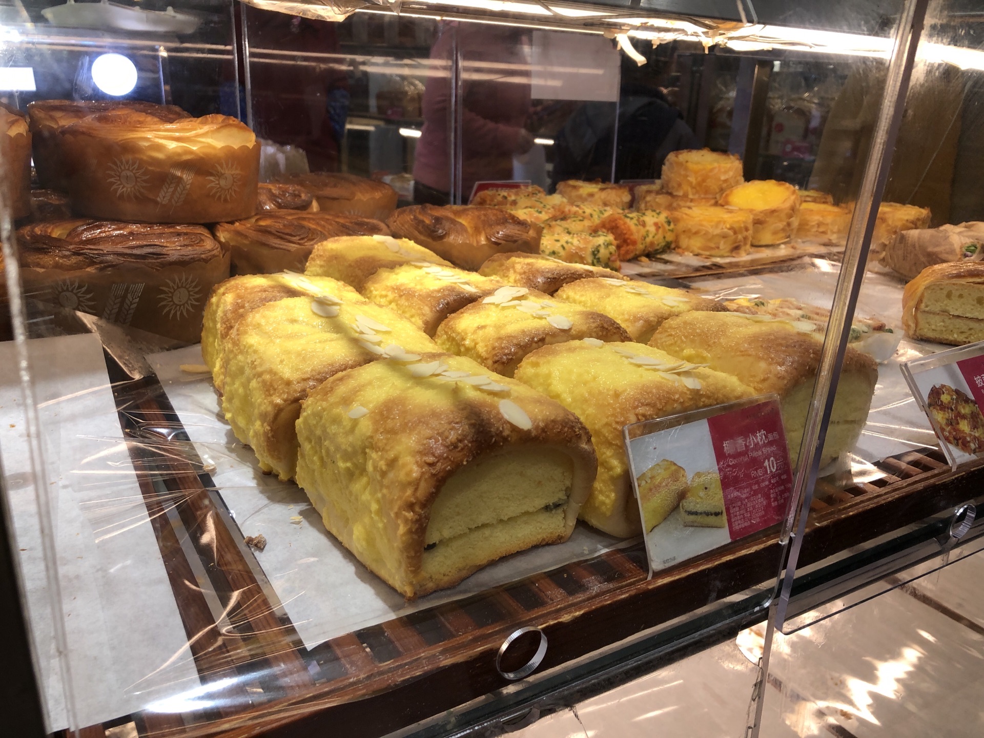 ...牛角面包」他家的羊角是招牌,很好吃、脆脆的、略微有点甜味,很香,奶油味也比较足~买的人还很多呢