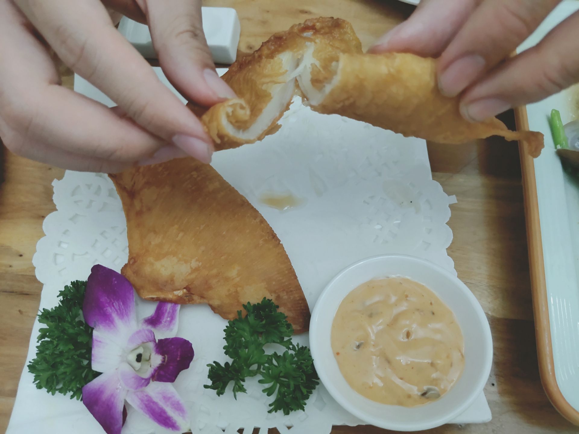 第一次走到他们餐厅门口一看我很惊讶,竟然在岛内也能吃到同安菜。 |鲨鱼丸枸杞叶汤^丸子Q弹,从口感上就能吃出是纯手工制作,配合枸杞叶熬汤喝,非常养身。 |同安煎蟹^还不错,是油煎的,有配上蟹膏那芬芳的香气真是超赞!蟹膏特别的多吃起来特别爽。 |海蛎煎^地道的闽南菜,在厦门旅游必尝菜,独具闽南特色。 |鹞鱼鱼翅^第一次吃到炸的鱼翅,做法独特,口感香脆可口。