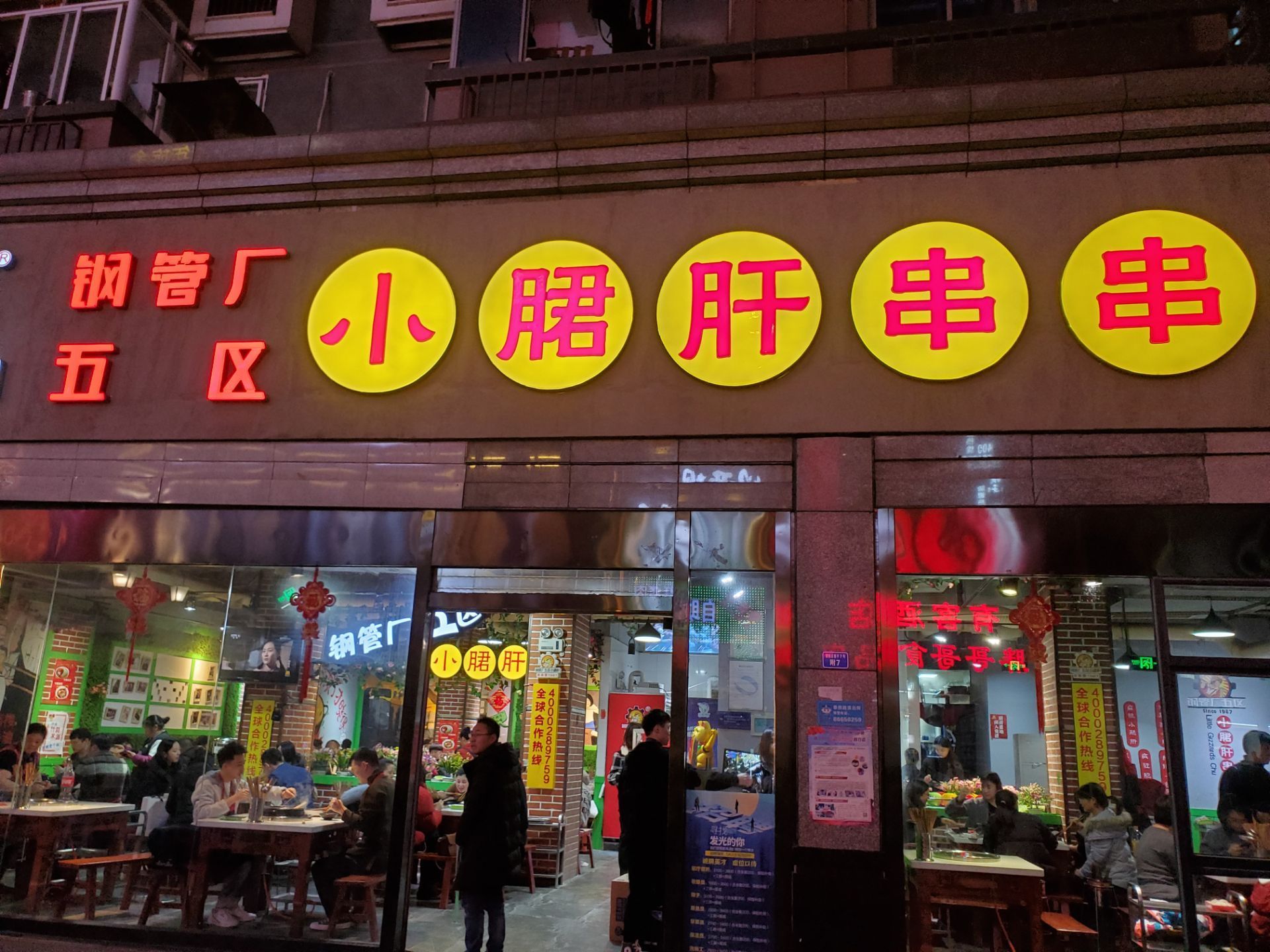 成都的钢管厂五区小郡肝串串香这几年简直火遍全国,各大城市都有他家的加盟店,这家春熙路店位置很好,导航定位很准,店面的装修有点破旧了,和附近的几家比起来有点格格不入,生意也没有原来好,但是味道没有变,依然很好吃,这家外地游客比较多,味道有些淡,本地人可以给老板说,锅底会加辣,吃起来还是很过瘾。