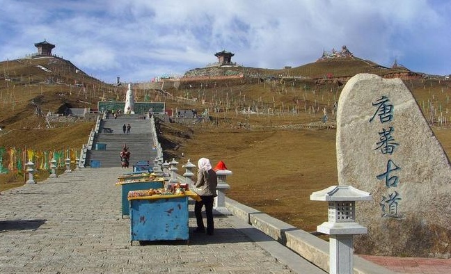 是我国古代历史上一条非常著名的道路,著名的文成公主远嫁吐蕃王松赞干布走的就是这条大道,爬上来还蛮喘的唐蕃古道,今天的214国道,也叫馒头岭驿道,是我国古代历史上一条非常著名的道路,著名的文成公主远嫁吐蕃王松赞干布走的就是这条大道,爬上来还蛮喘的,可以俯瞰文成公主的雕像。