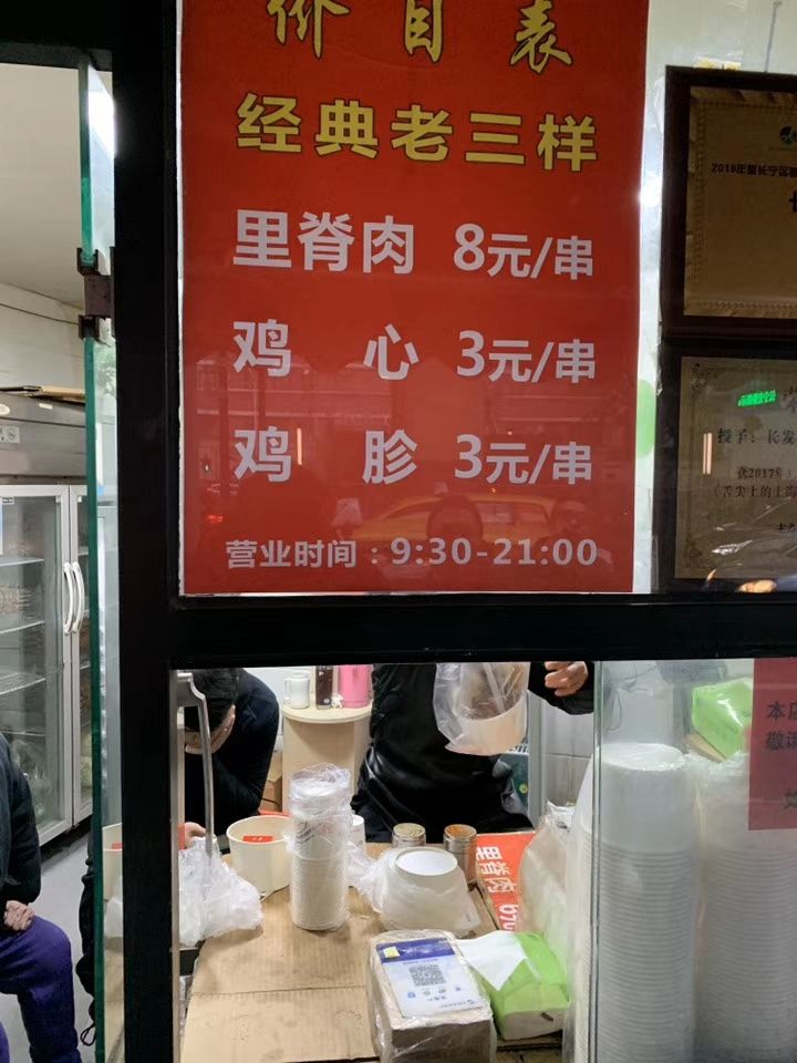 上海延安西路与武夷路口的长发餐饮是一家亲民的店家,在世上还没有“网红店”这几个字时,店门口就一...上海延安西路与武夷路口的长发餐饮是一家亲民的店家,在世上还没有“网红店”这几个字时,店门口就一直有人排队了,有的时候队伍很长,运气好的时候队伍不长,这个时候就会买上一些,里脊和鸡心好好吃。