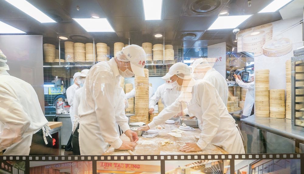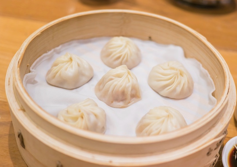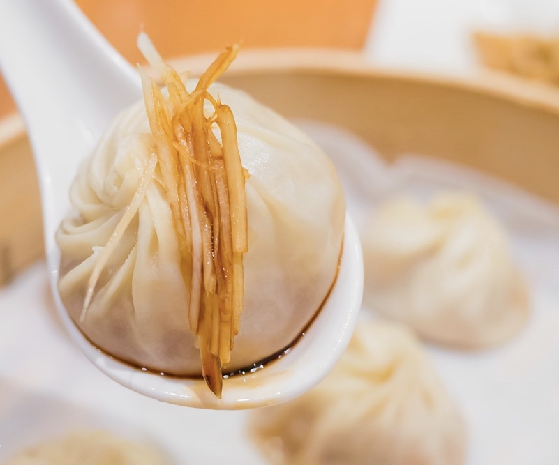 鼎泰丰最有名的 当数有着18折的黄金外皮的小笼包 夹起来一颗的重量也满沈的 感觉得到里面汤汁非常饱满