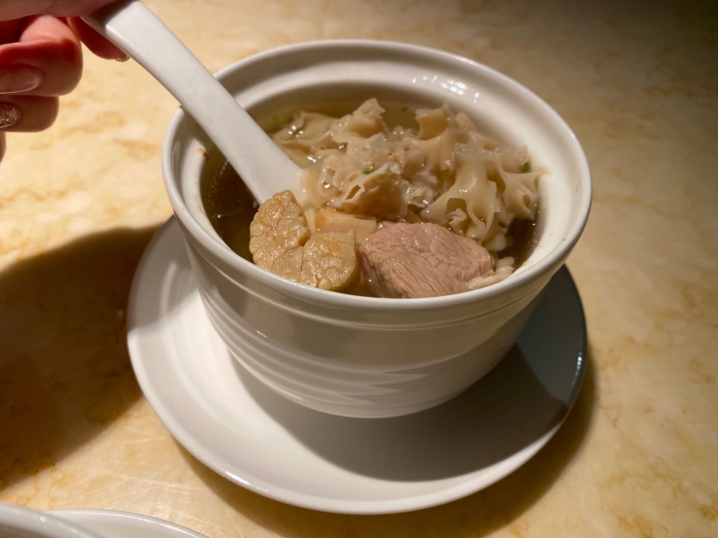 上饍位于环岛东路JFC品尚中心B馆4楼(也就是建发店)店内环境优美,就是灯关暗了一点。[偷笑] [服务铃]服务:店里员工也很热情,那天不知道为什么筷子老掉。之少换了3次筷子,自己都不好意思了,人家服务员还说没关系,掉了在说。怪不好意思的[囧] |金汤自制黑豆腐^:我就是个豆腐脑袋了,天生就爱吃豆腐,豆腐外焦内嫩的。超下饭的。 |绣球菌元贝炖土猪肉^:最近二师兄贵到吃不起了, 汤里面看到一整块的肉,好感动啊,汤也很甘甜。 推荐:|老北京挂炉烤鸭^|海鲜组合酱油水^