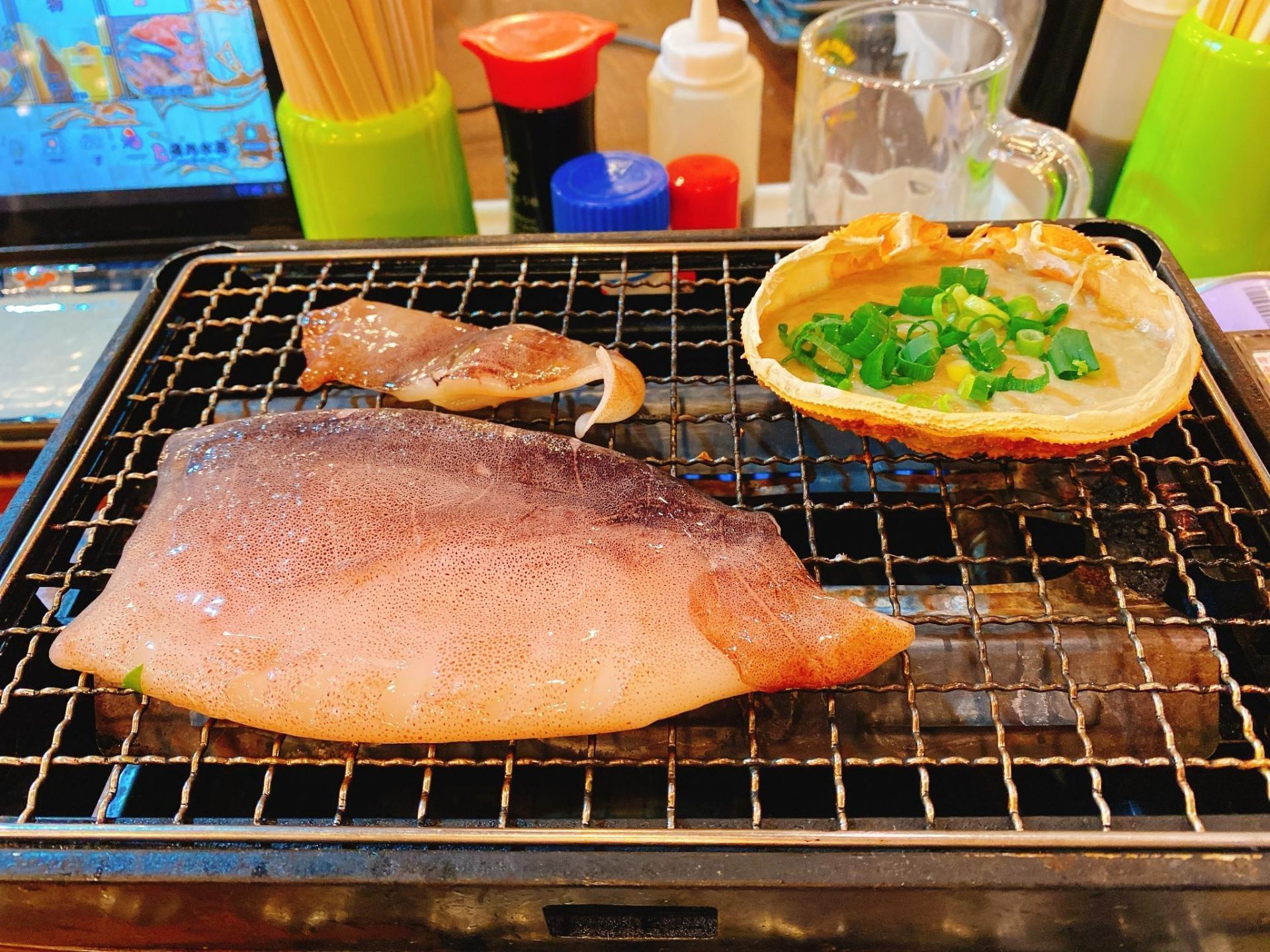 我们点了一个鱿鱼,一个蟹味增,一份三文鱼,两个大扇贝还有一份蟹黄炒饭。蟹味噌味道很独特,搭配炒饭更好吃。还得配上啤酒才完美。