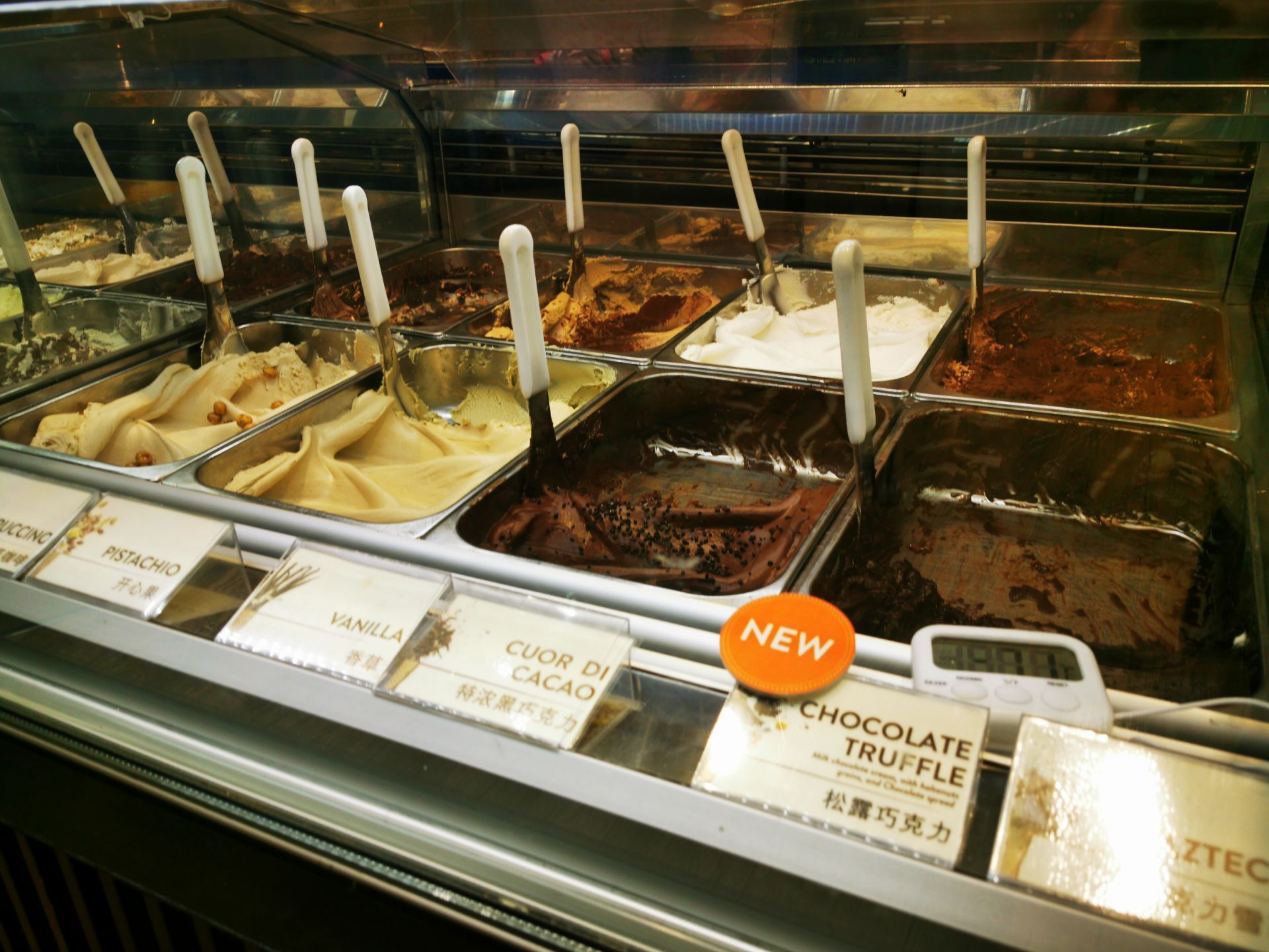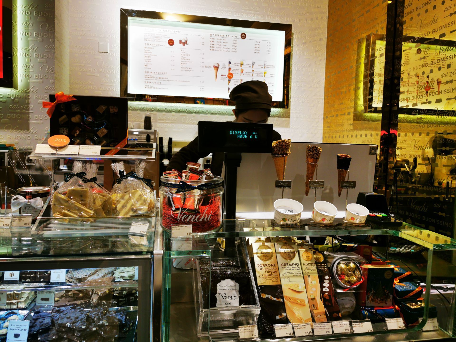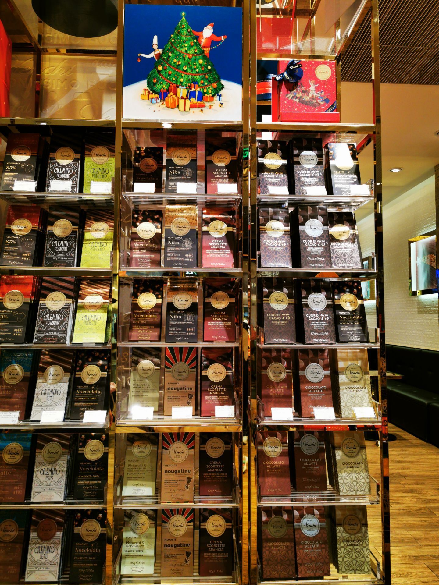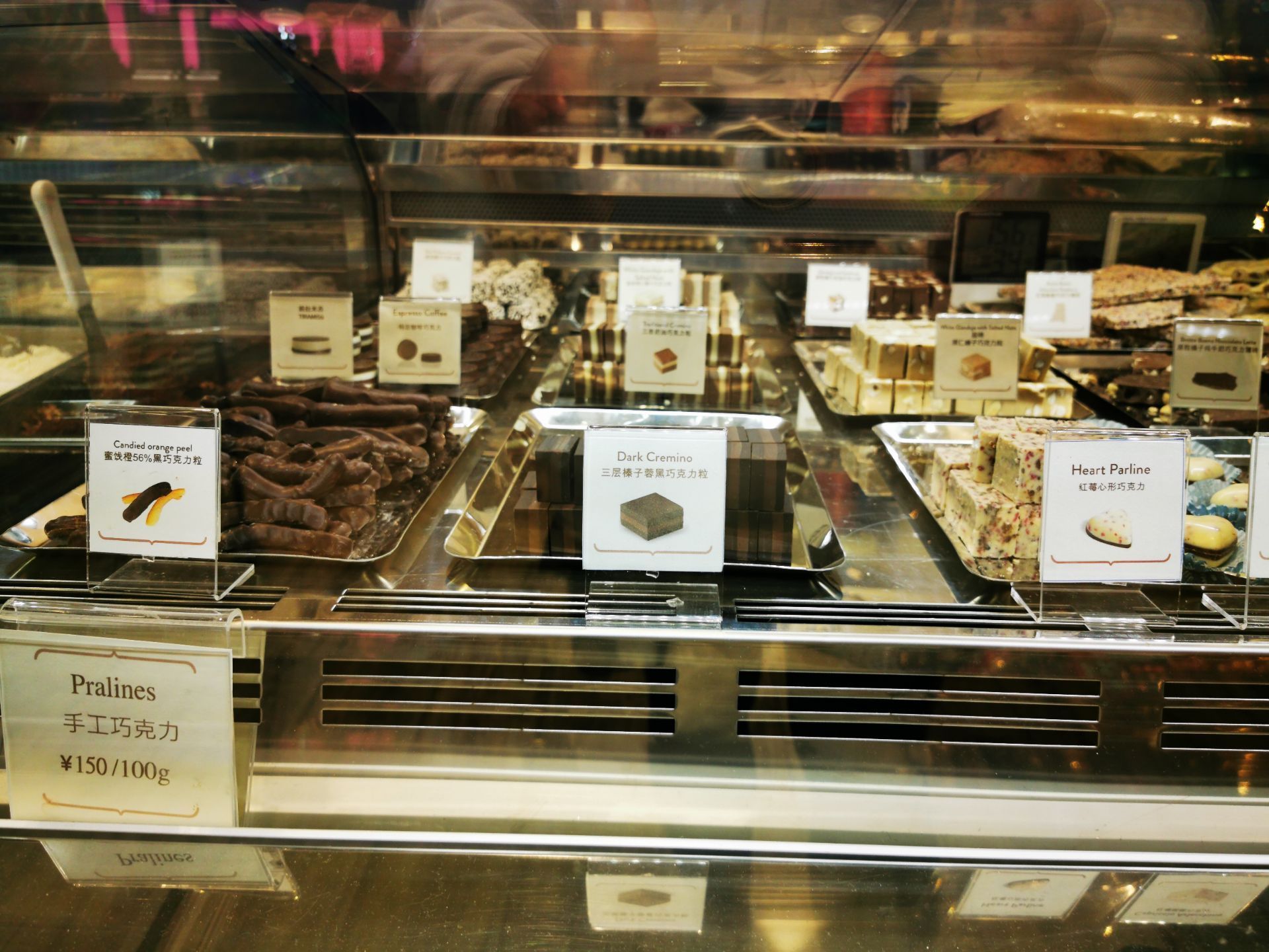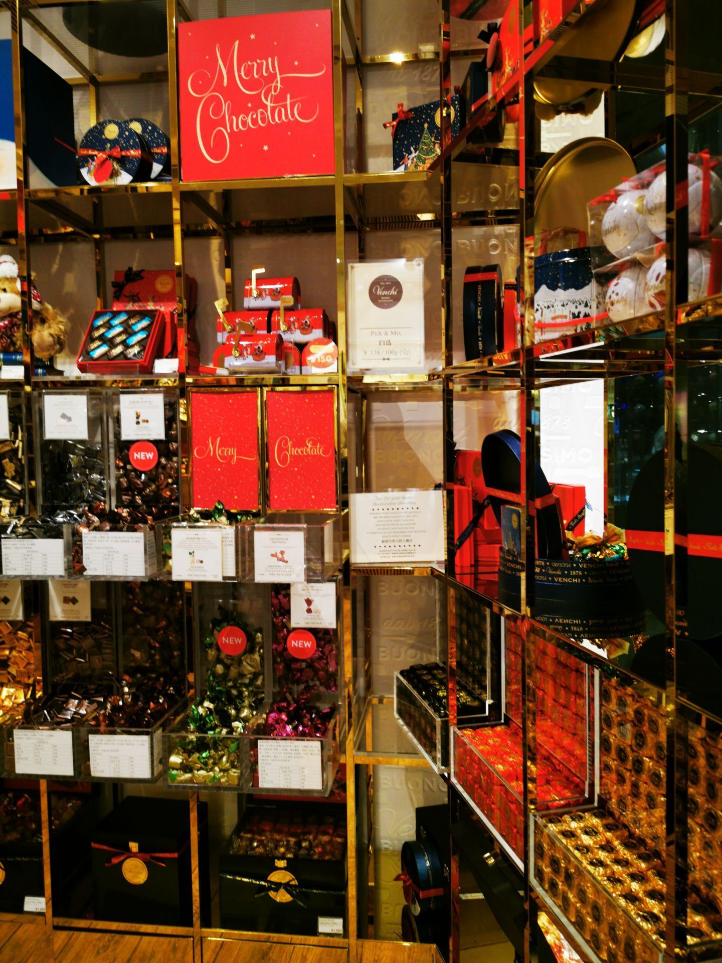 比godiva历史更悠久的巧克力店,不过貌似年份晚于瑞士莲,趁着圣诞前夕过来了,不妨一试吧 【环境】自上而下,自左而右满满的雪糕筒装饰,让人感觉甜蜜无比;旁边五彩斑斓的各式自选巧克力看得人眼花缭乱 【服务】这边除了巧克力外,还售卖雪糕、咖啡等零食和饮料,就连巧克力雪茄也有卖哦! 买散装巧克力的话会免费给个透明袋子装着,然后就是印了他们家名字的金色纸袋;送人想要体面一点的话,罐罐也有很多样式可以选择,不过基本一个小罐都是50元+的价格 【口味】因为想多试不同的口味,选择了138元/100g的自选巧克力。感觉除了招牌的鱼子酱巧克力外,其他就just so so咯 还有一点是埋单了竟然不给小票,我赶时间还以为会放在袋子里,回家才发现没有给……