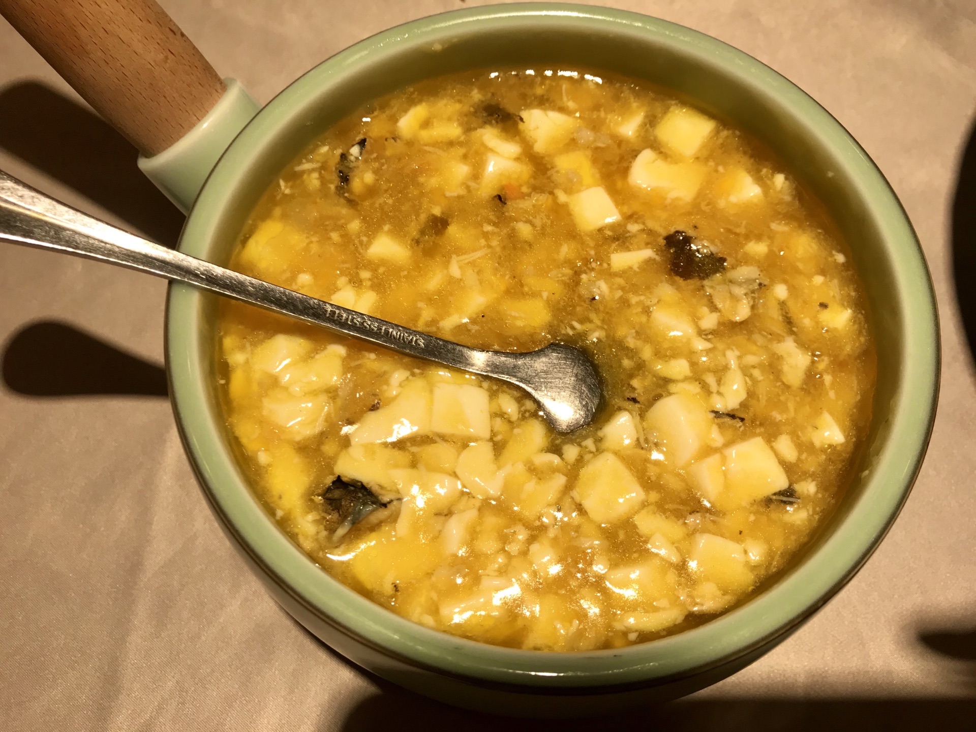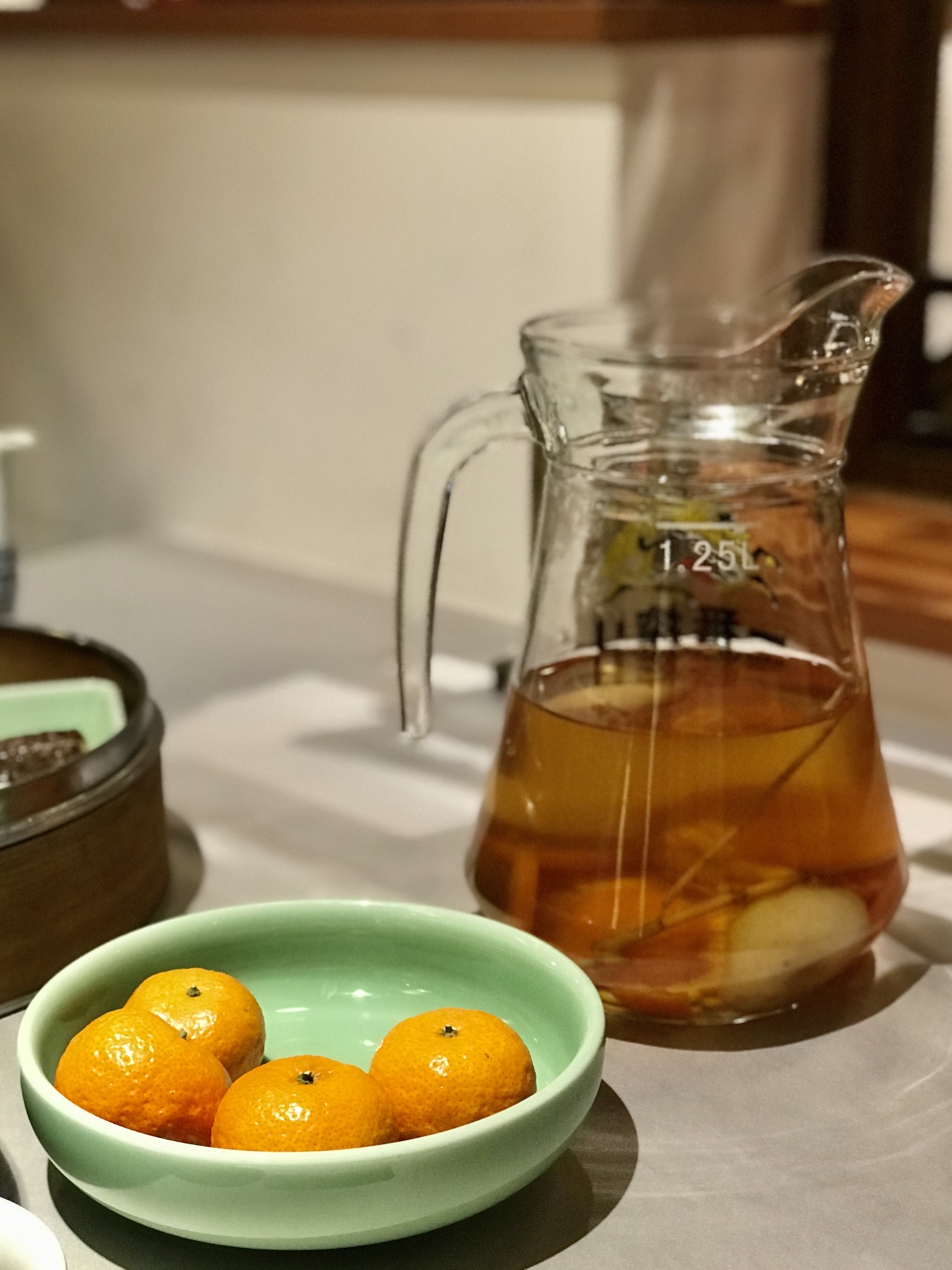 孔乙己酒家是一家地道的绍兴菜馆,门口就是鲁迅笔下绍兴读书人孔乙己的形象——穿着读书人的长衫,却和打工的短衫党一样站着喝酒,倚着方桌,正用手指捉起一粒茴香豆送往嘴中…… 许多人第一次来这里,就是因为喜欢鲁迅的文章,同情鲁迅笔下的小人物。他们是冲着这个店名,冲着这个酒家原汁原味的正宗绍兴菜和绍兴黄酒来的。 定居澳洲的同学回沪,两人就约在浓浓中国风装饰的“孔乙己”共进午餐。同学一来,就被酒家典型的传统装饰风格所惊艳。刚落座,服务员眼中有活,马上上茶,奉上菜单,又先送上时令水果,免得等上菜时心焦,非常温馨。两人胃口有限,点了他家特色双人套餐: 1.先上了茅根马蹄水,常温,水果清香,淡淡的清甜,很开胃,受欢迎; 2.糟卤三拼。三样美味分别是青鱼、香肠和白切猪肉。绍兴乃酒乡,此处糟醉食品当为一绝。上述糟卤三拼,吃下来感觉青鱼块最好吃,香肠次之,白切肉也很不错; 3.太雕鸡翅。“孔乙己”的特色菜,也是当日最好吃的一道菜。端上来时,酒香扑鼻,菜盆下有烛火燃着保温,很好保持了太雕酒(黄酒的一种)的风味。鸡翅做得非常嫩,入味又不咸,还有醉人的酒香,令人食后难忘; 4.清炒豆苗,虽是家常菜,但炒熟又保持生青碧绿还是要有点功底的; 5.蟹粉豆腐,豆腐采用了嫩嫩的绢豆腐,蟹粉是实实在在的蟹肉,量还真是不少,趁热吃真是鲜掉眉毛了[调皮] 6.鸡汤葱油肉皮煲,采用的是本地有名的三林肉皮,Q弹而又不油腻,多孔的海绵状结构,吸满了鲜美的鸡汤,再加上几片葱花提香增色,真是好吃! 7.油爆河虾。听说同学远涉重洋而来,店家特地赠送了这道菜,新鲜的河虾,小而肥美,恰到好处的火候,令虾皮酥脆而虾肉不老,食之口感极佳。在此要感谢老板的慷慨! 店家的特色除了正宗绍兴菜,还有浓浓的中国风装饰。店家在招聘服务员方面也是很有特色的,服务员仪容整洁,服务细心周到,有几位上了年纪说一口绍兴话的服务员特别亲切,比年轻女孩的服务意识更强,脾气也更好。 总之,带海外同学来这里回忆传统,绝对不虚此行。