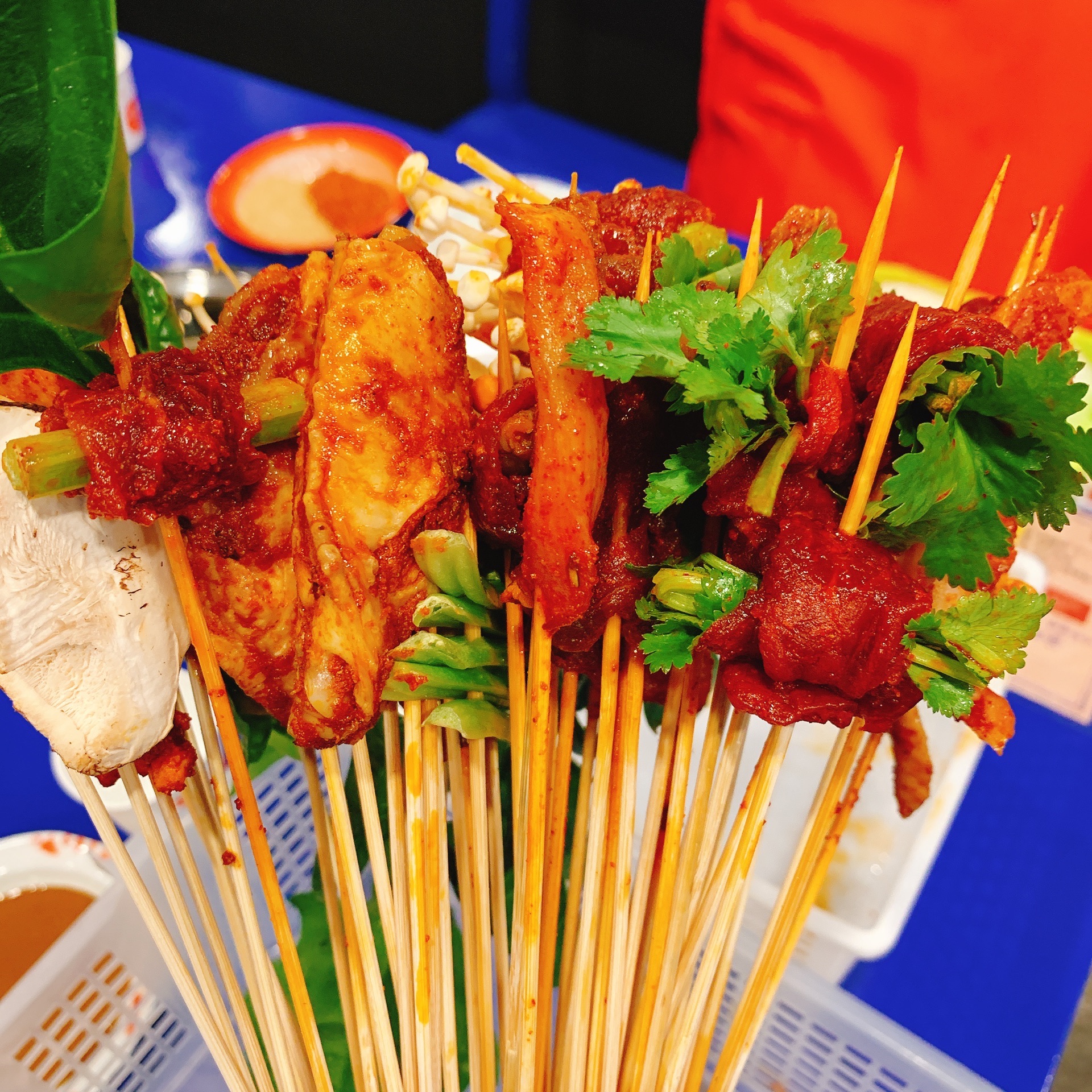 味道很正宗,火锅底料都马路边边原来的味道。 服务业很周到,辣碟油碟干碟统统都上齐,服务员小姐姐亲自帮忙调配。所有需要的蘸料也都会端到你面前,自己想怎么配都可以。 在这里可以吃串串,吃麻辣烫也可以吃麻辣香锅。锅底都挺全的