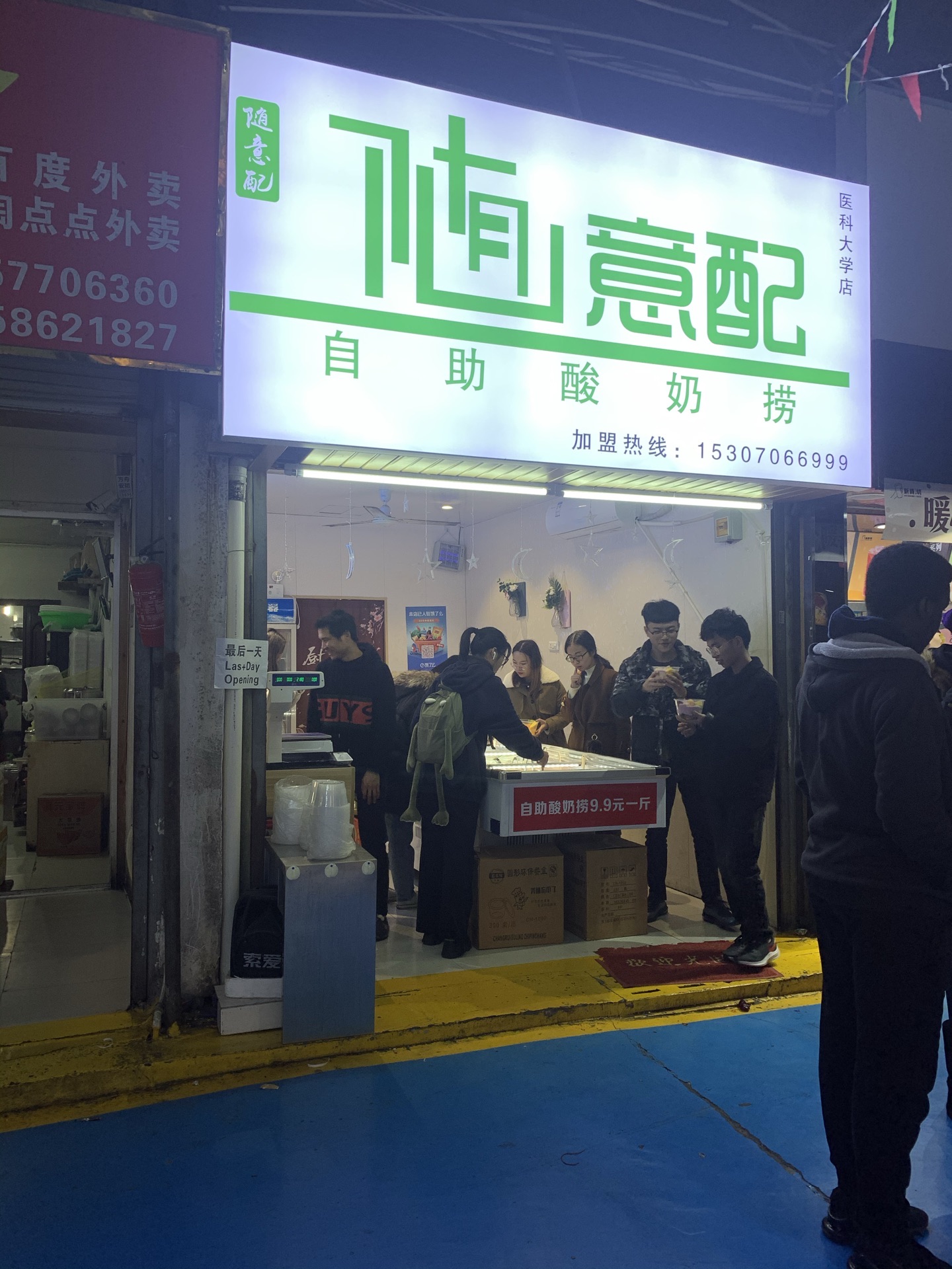 学校附近的小吃街,果然种类丰富价格实惠。可惜,评价都在推荐的脆皮年糕,竟然关门了,贴着转让,不知道是不是永久停业。好在蛋挞吃到了!一元一个,味道不错,但是冷了,影响口感了。烤冷面有人排队,我也就跟着买了,味道不错,可选的配料很丰富,食材很新鲜,很好吃。街口的酸奶捞很吸引人,自助搭配,只要九块九。